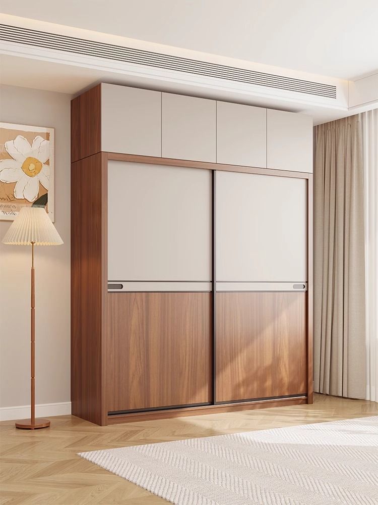 단단한 나무 다층 보드 빛 고급 슬라이딩 도어 슬라이딩 도어 옷장 가정용 침실 현대 간단한 완성 된 생태 보드 옷장