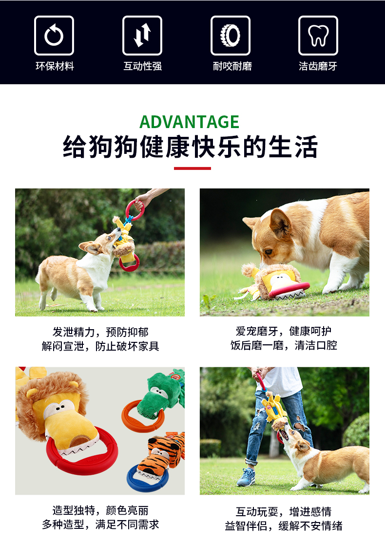 개를위한 GiGWi Gui Tug 인터랙티브 Tug 장난감 TPR Bite 저항하는 고무 Molar 사운드 매듭 봉제 장난감스토어 가기
