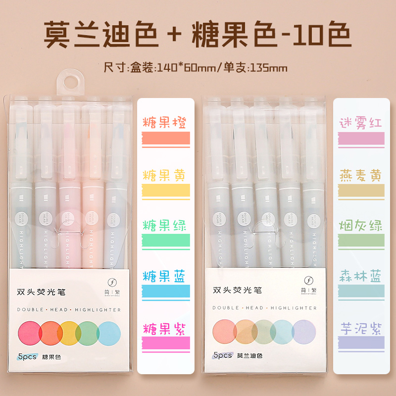 두 배 투명 창 투명 높은 라이터 Morandi 컬러 형광 마커 펜 학생들을위한 대용량 컬러 마커