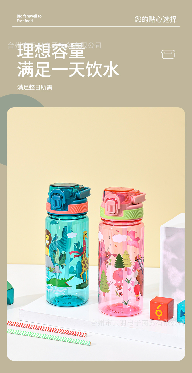 어린이 플라스틱 물 컵 휴대용 고온 스포츠 학생 귀여운 만화 직접 마시는 컵 스포츠 물 컵 600ml스토어 가기