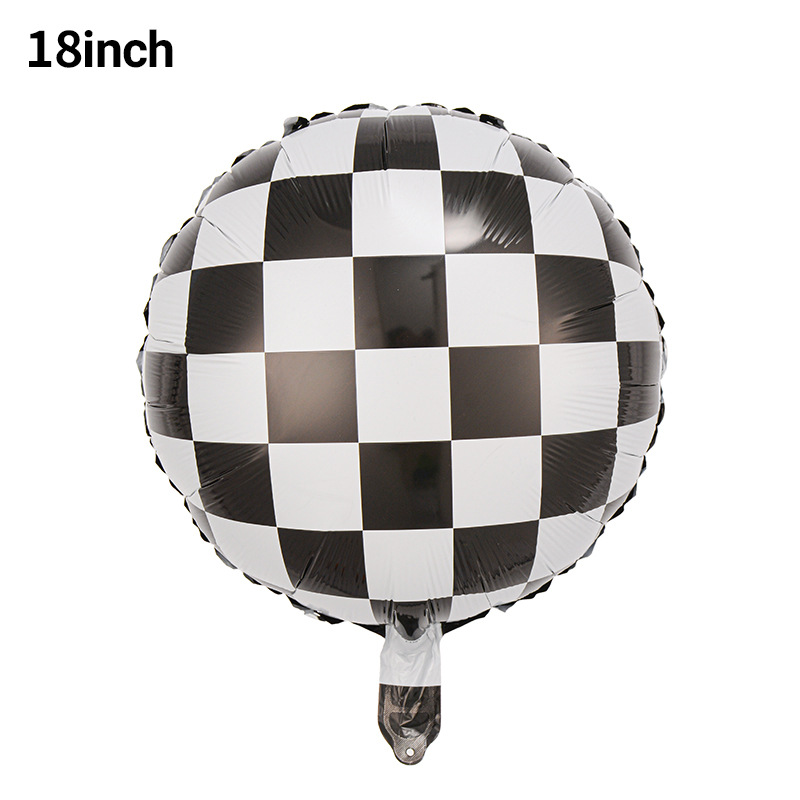 새로운 타이어 풍선 18 인치 흑백 격자 무늬 라운드 알루미늄 필름 풍선 경주 테마 장식 공식 집회