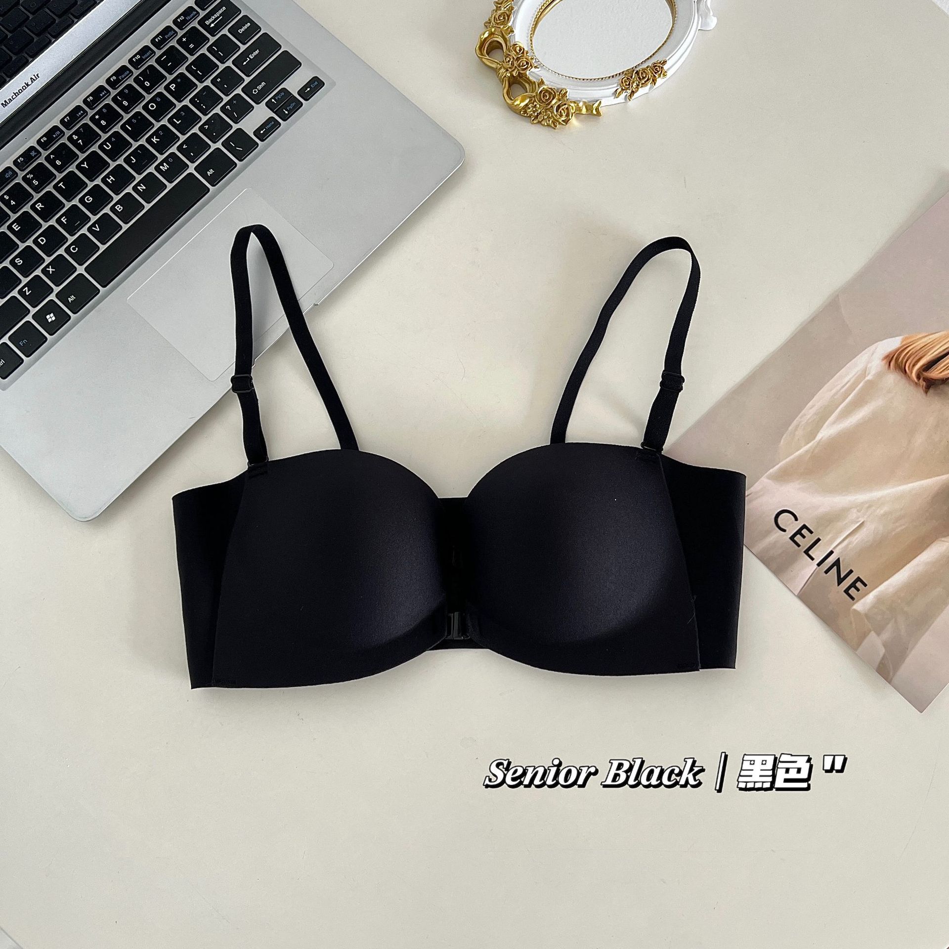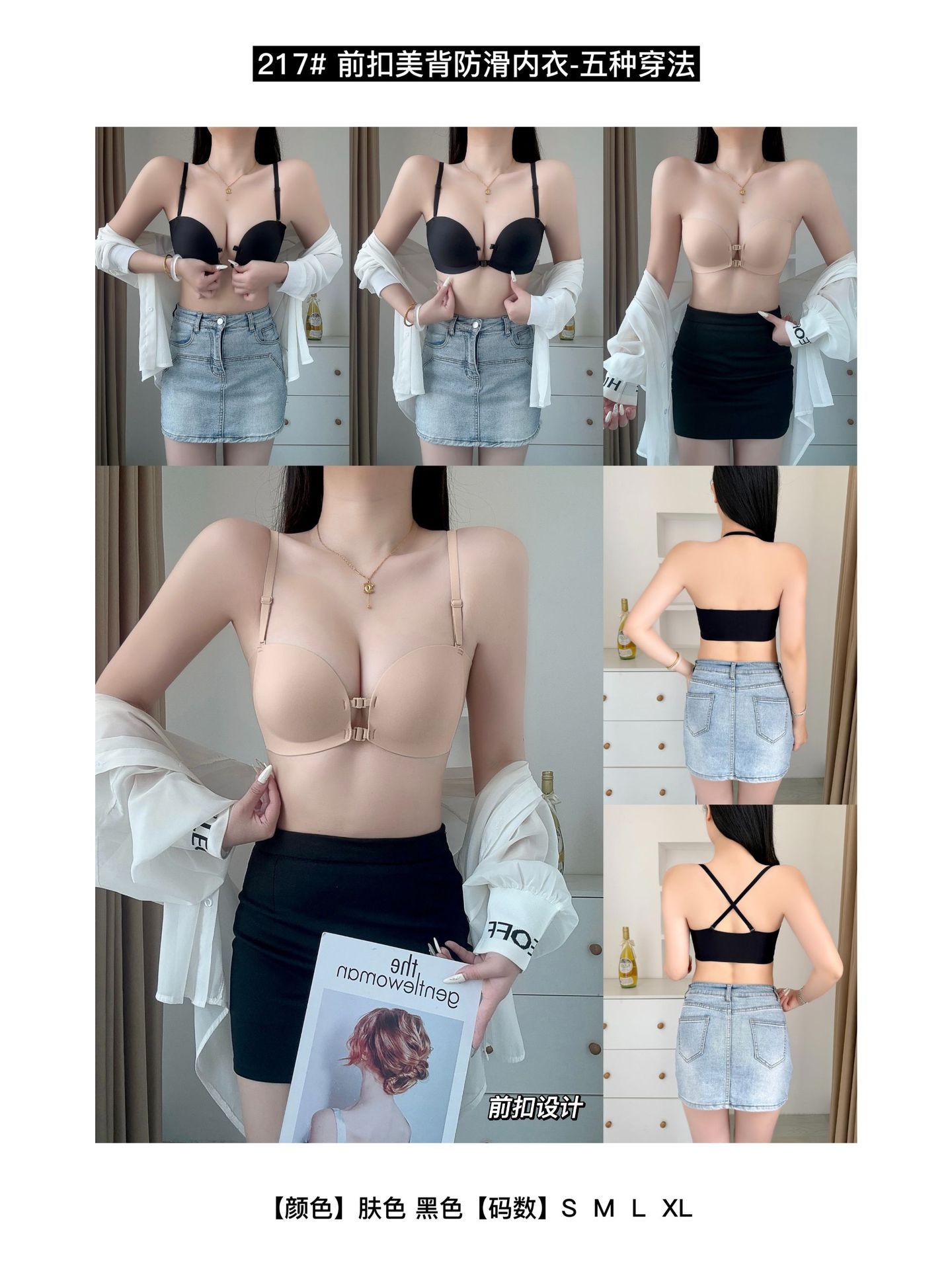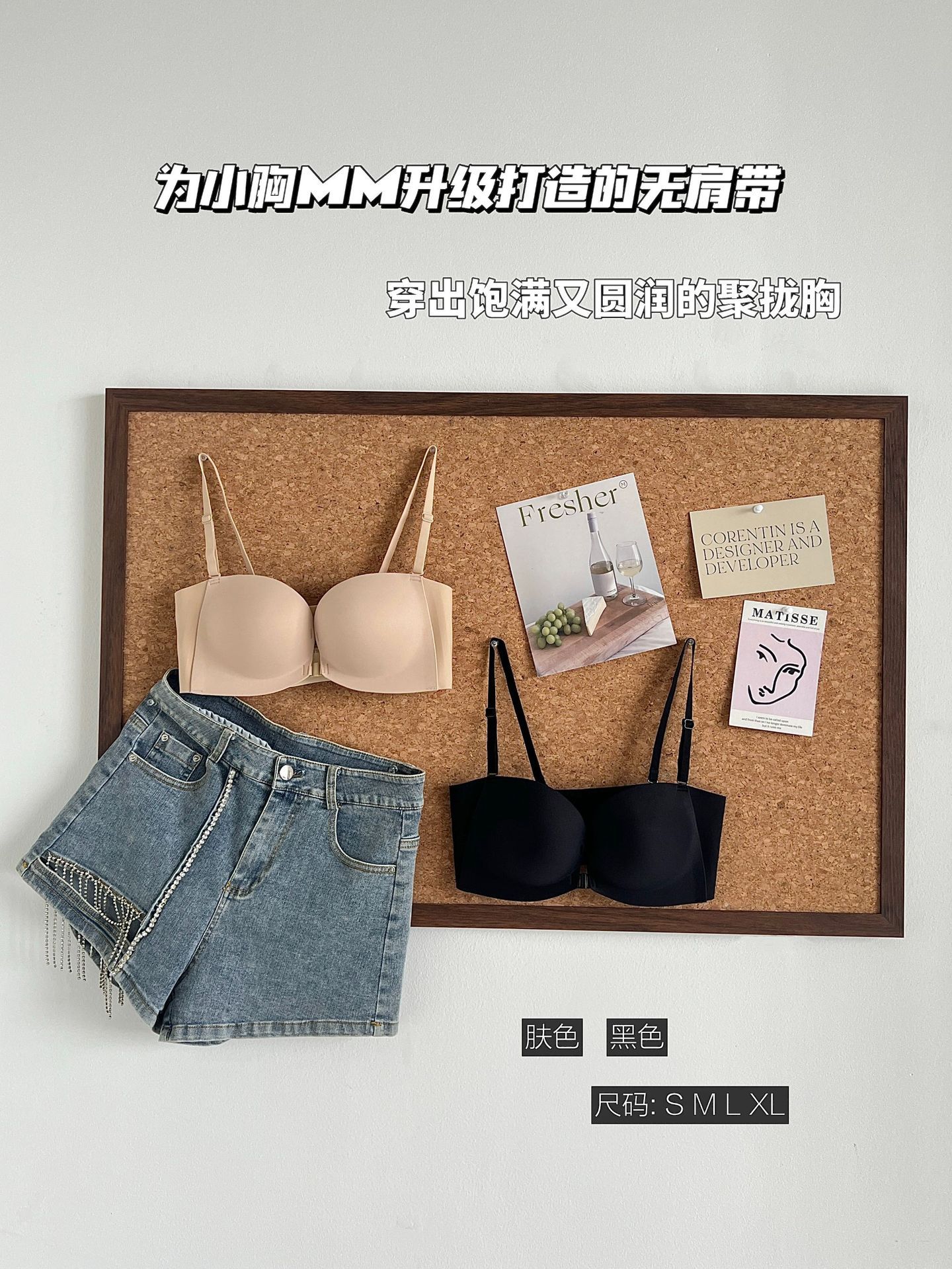 추적없는 더블 프론트 버클 스트랩리스 속옷 여성의 보이지 않는 미끄럼 방지 튜브 탑 크로스 아름다운 등 작은 가슴 푸시 업 브라스토어 가기