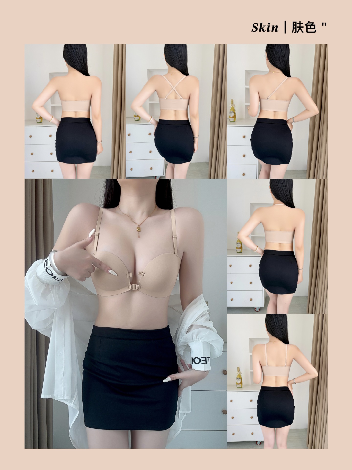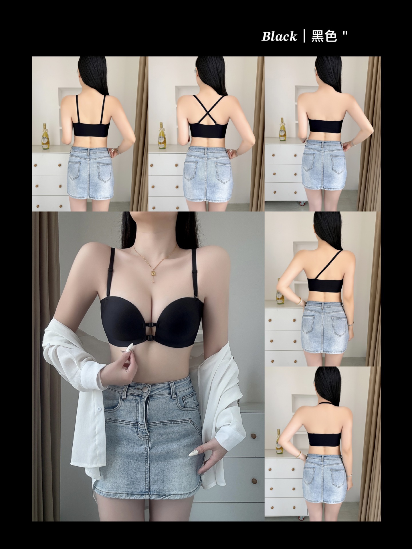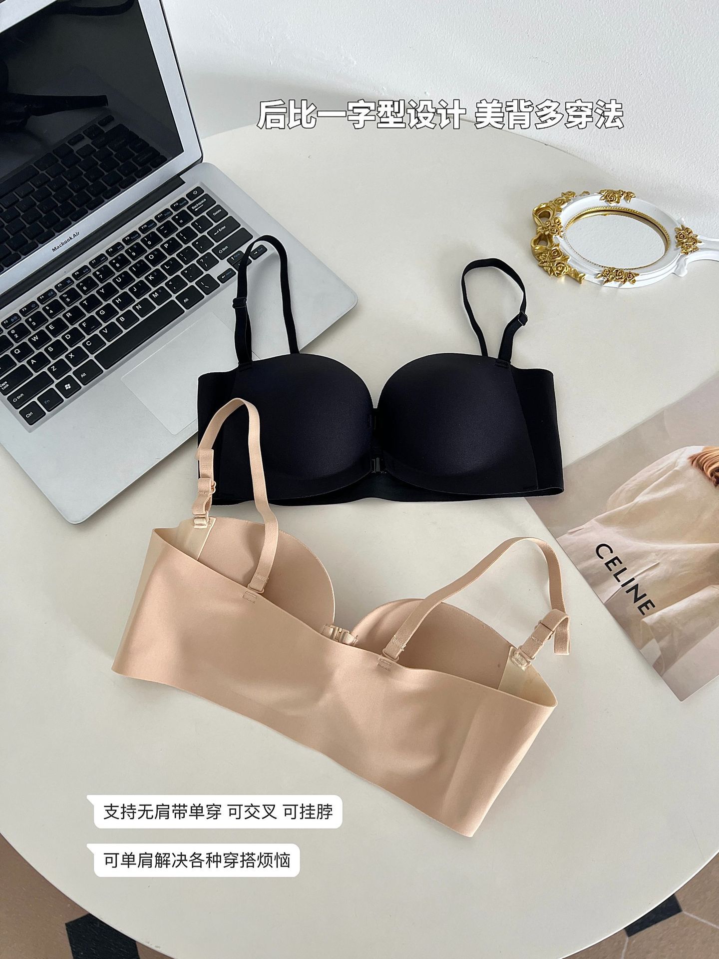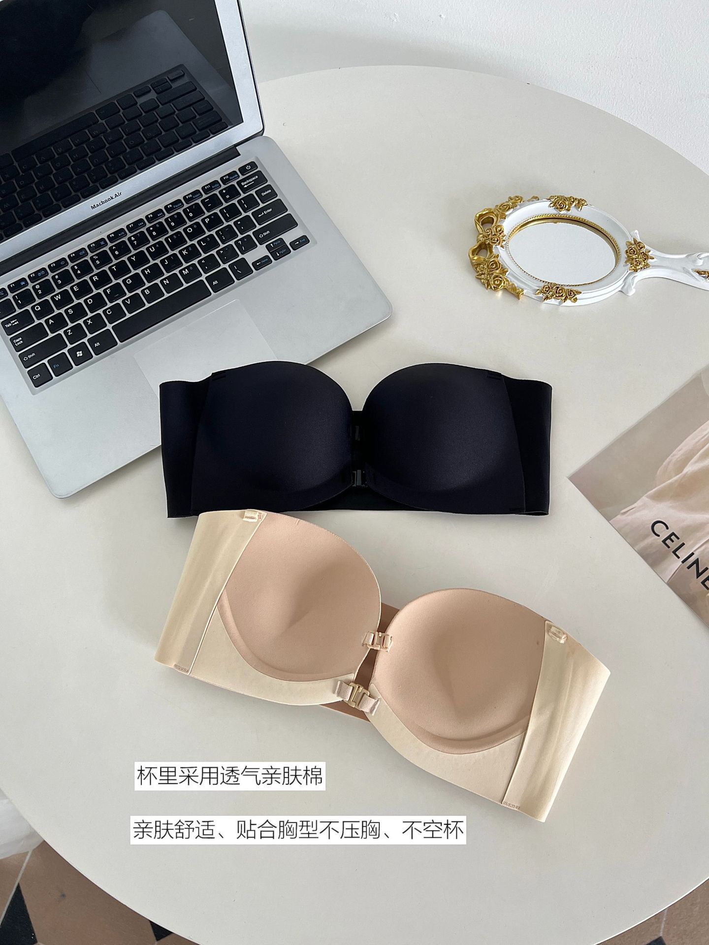 추적없는 더블 프론트 버클 스트랩리스 속옷 여성의 보이지 않는 미끄럼 방지 튜브 탑 크로스 아름다운 등 작은 가슴 푸시 업 브라스토어 가기