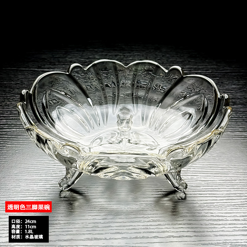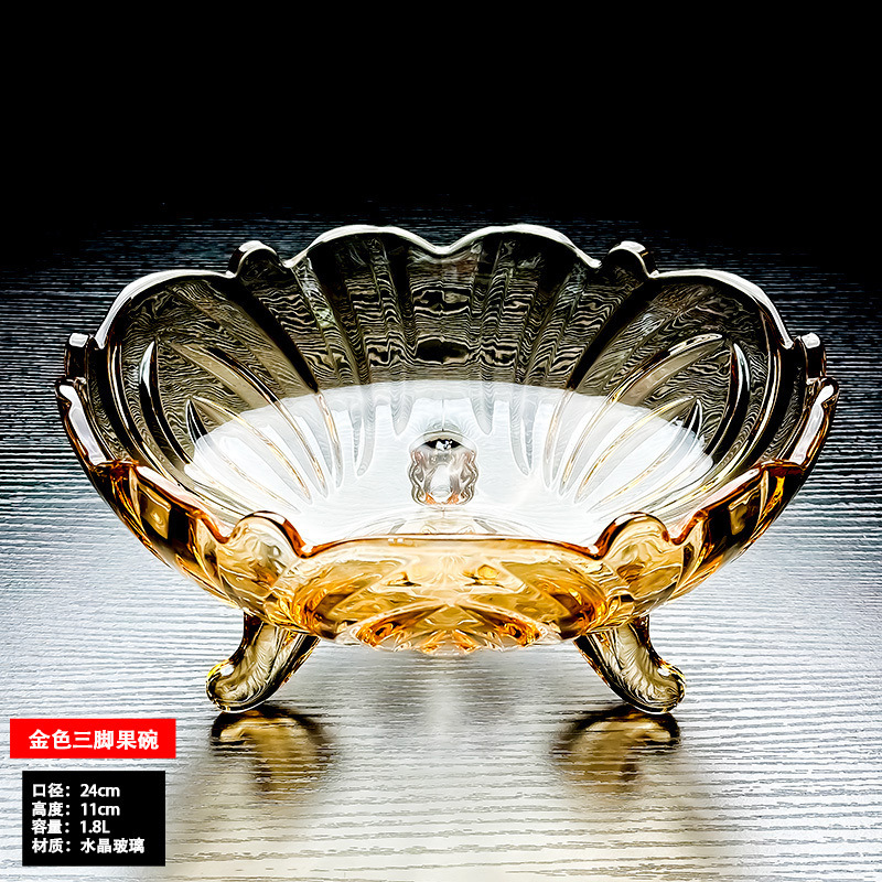 2024 새로운 트리플 과일 플레이트 대형 과일 플레이트 고급 3 다리 거실 가정용 크리스탈 유리 그릇 사이버 연예인 라이트 럭셔리스토어 가기