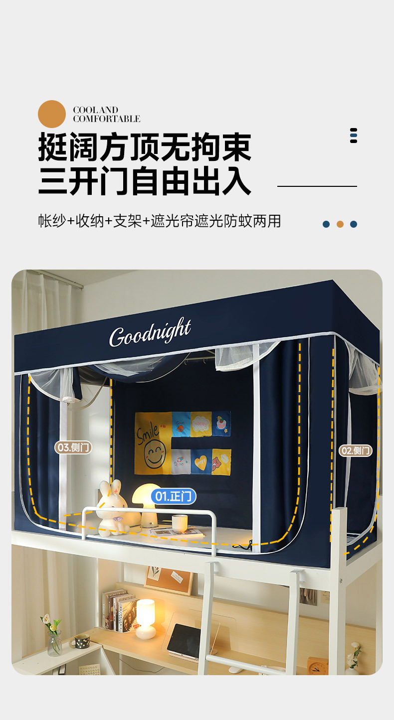 국경 간 학생 기숙사 안티 모기 그물 상단 및 하단 침대 커튼 1 피스 코팅 코팅 침대 커튼 전체 브래킷