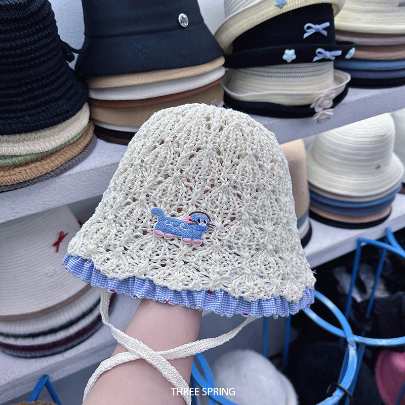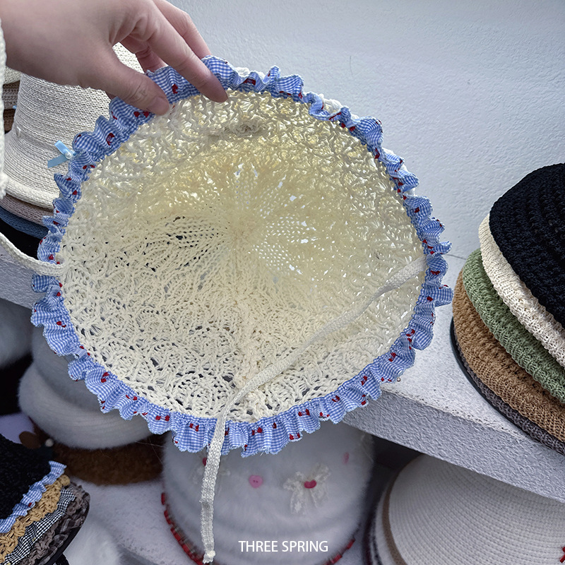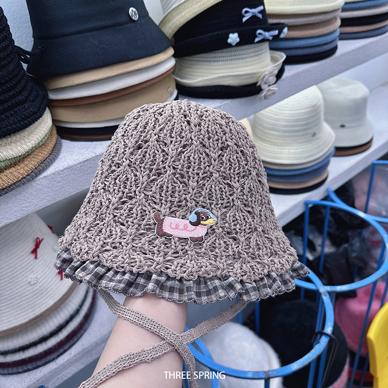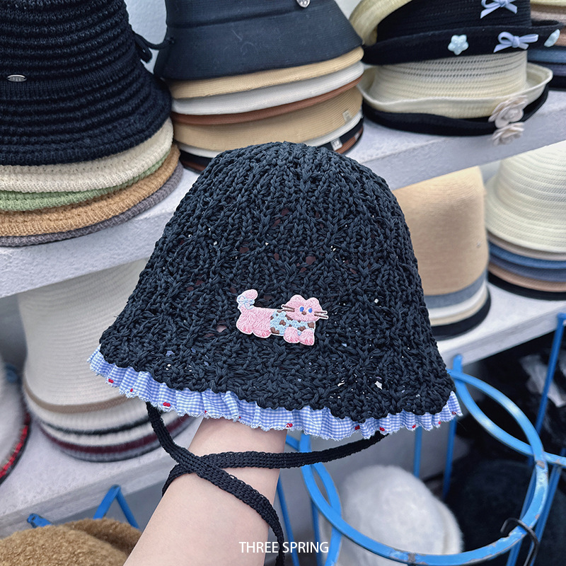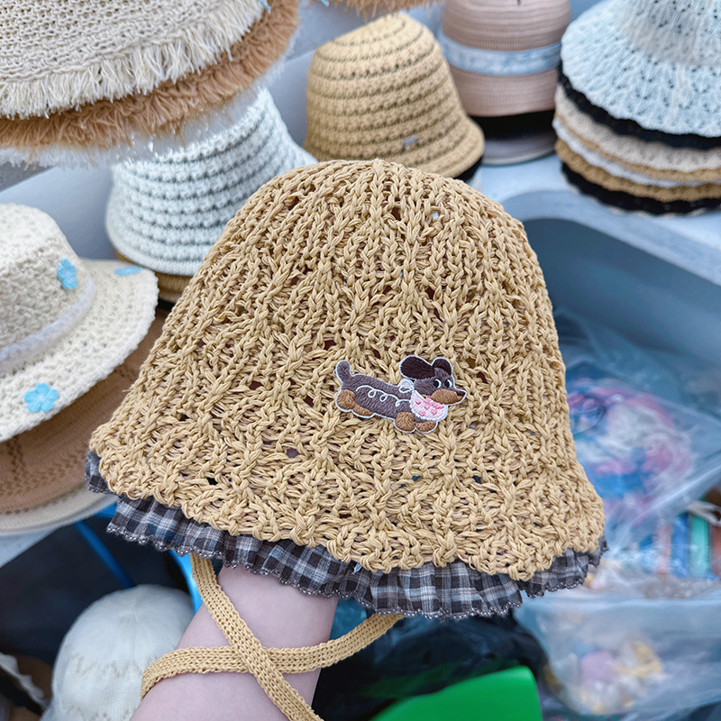 도매 한국 2025 새로운 만화 스티커 라피아 잔디 어부 모자 차양 선 스크린 얼굴 작은 밀짚 모자스토어 가기
