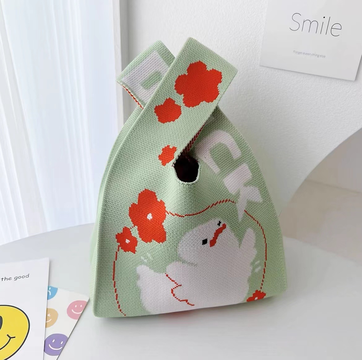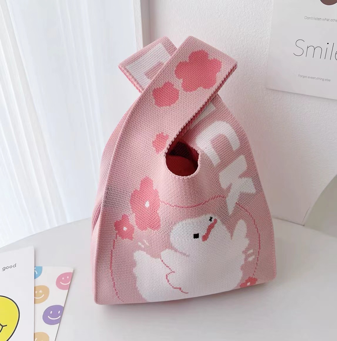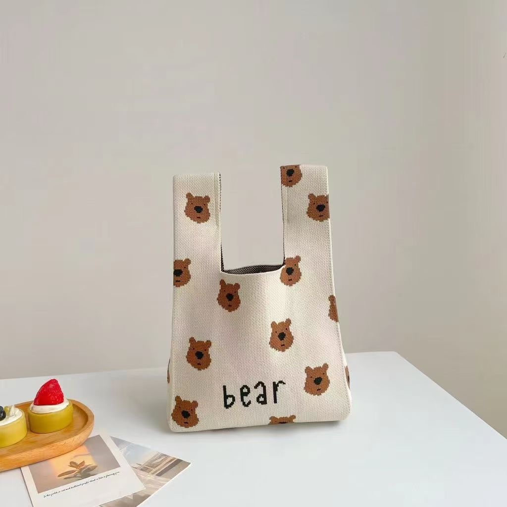3 월 8 일 여신 축제 새로운 인터넷 연예인 핸드백 여성 니트 스트라이프 버킷 백 일본과 한국식 올 매치 핸드 토트 백스토어 가기