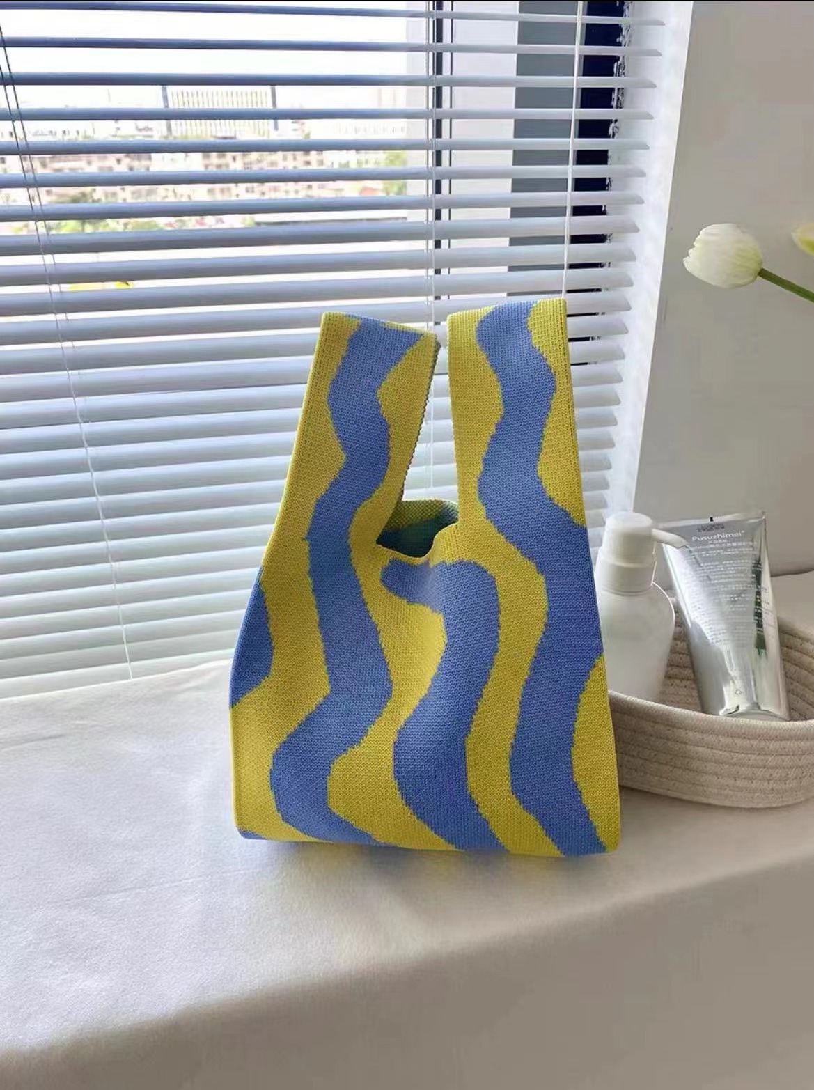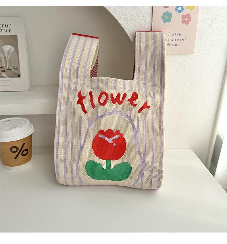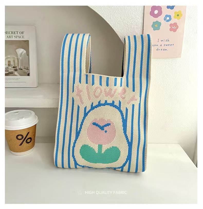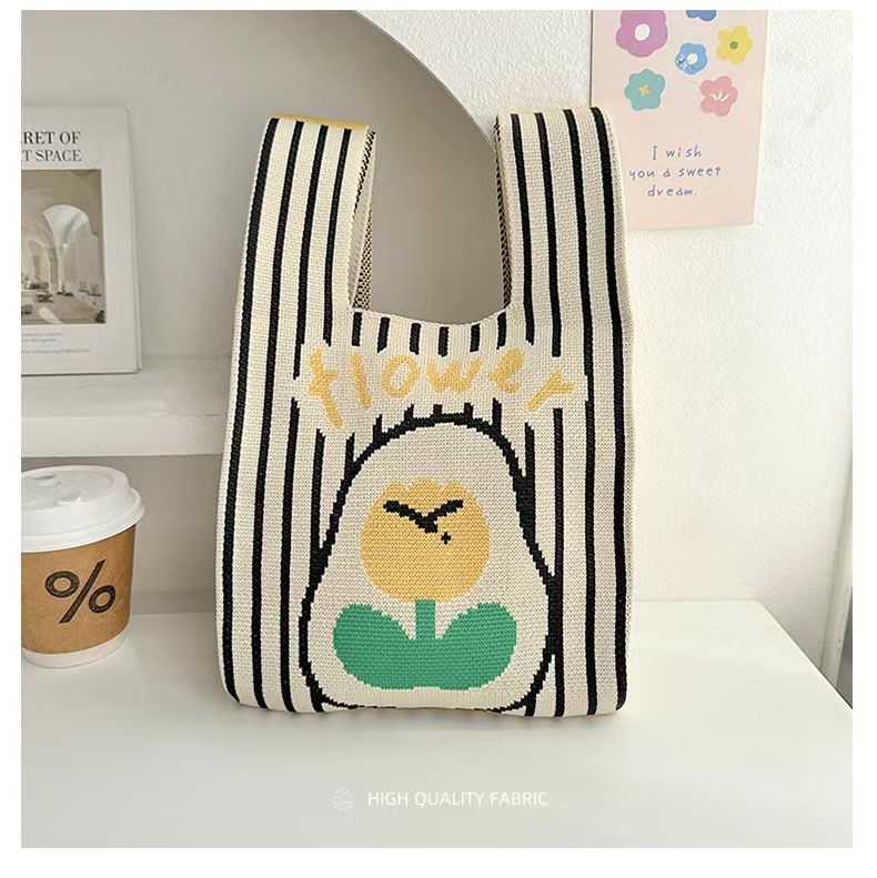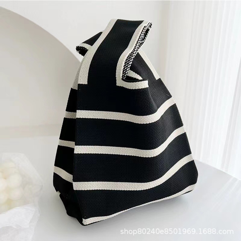 3 월 8 일 여신 축제 새로운 인터넷 연예인 핸드백 여성 니트 스트라이프 버킷 백 일본과 한국식 올 매치 핸드 토트 백