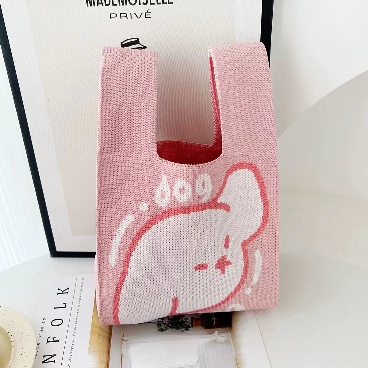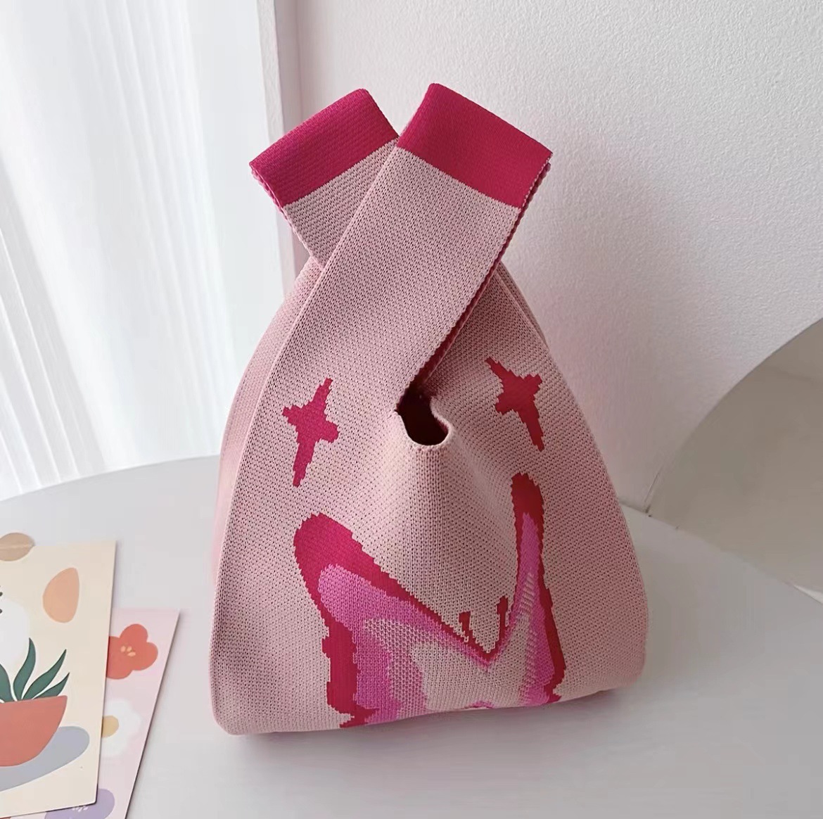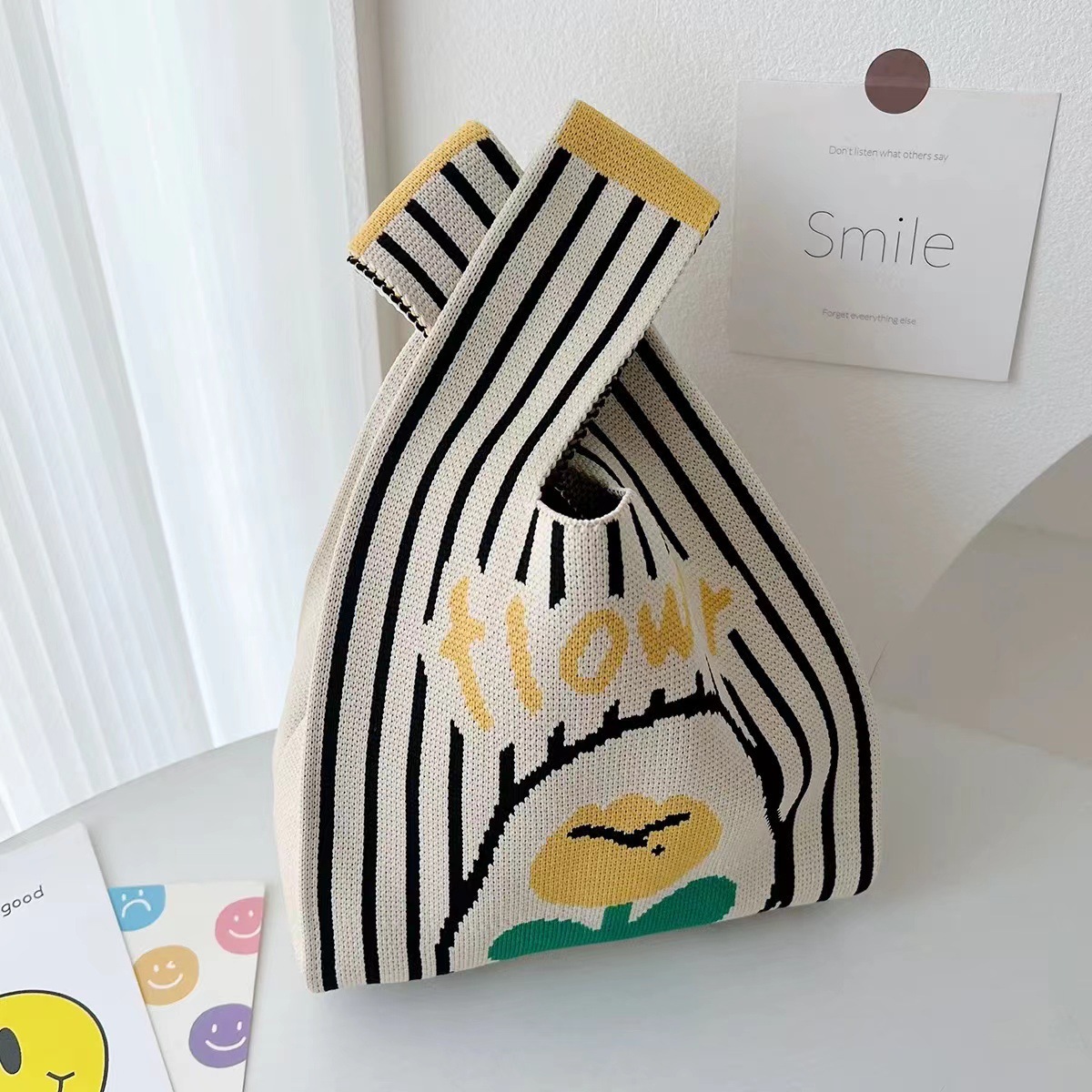3 월 8 일 여신 축제 새로운 인터넷 연예인 핸드백 여성 니트 스트라이프 버킷 백 일본과 한국식 올 매치 핸드 토트 백
