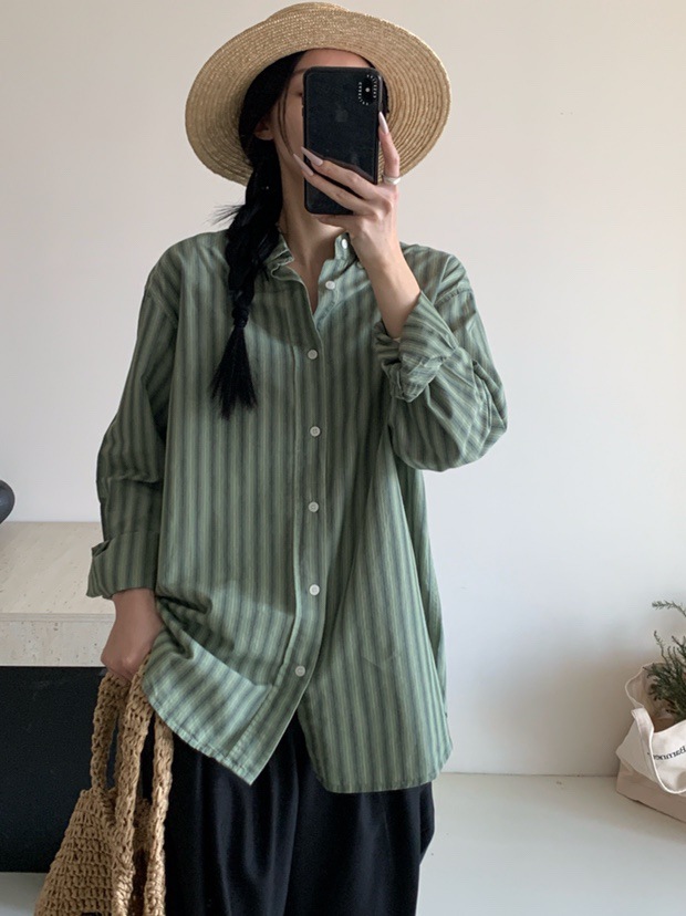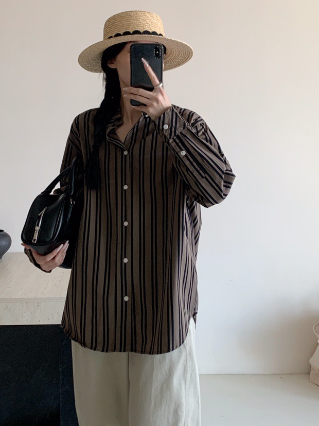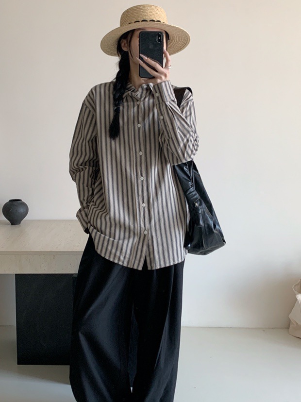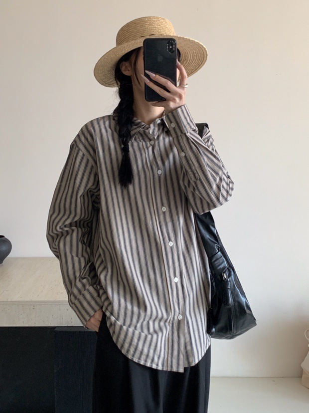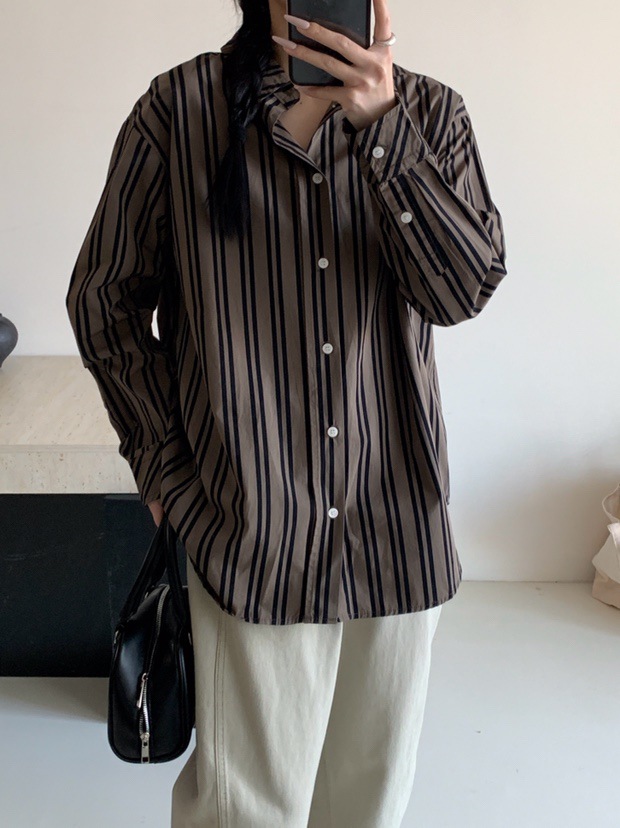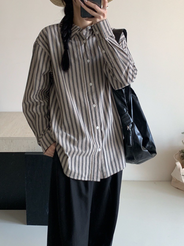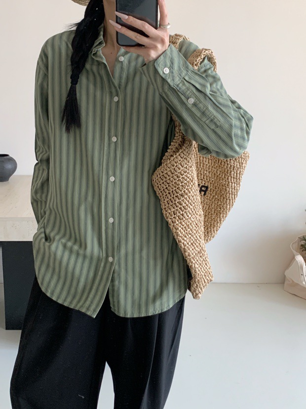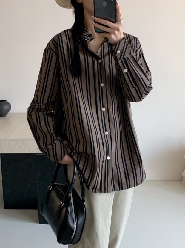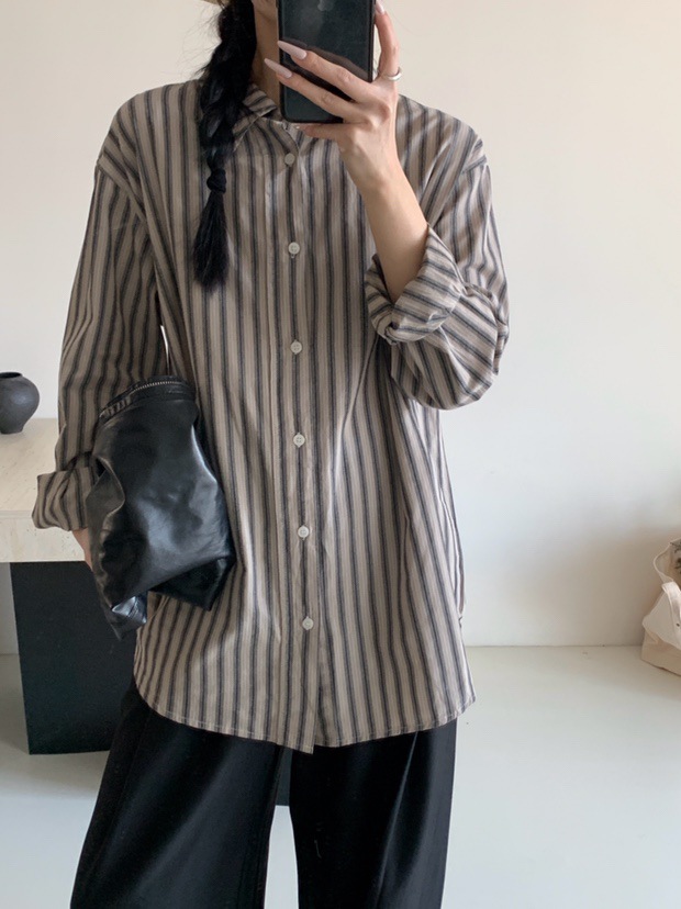 한국식 줄무늬 긴팔 셔츠 여성용 2025 봄 새 캐주얼 슬리밍 연령 감소 느슨한 올매치 탑스토어 가기