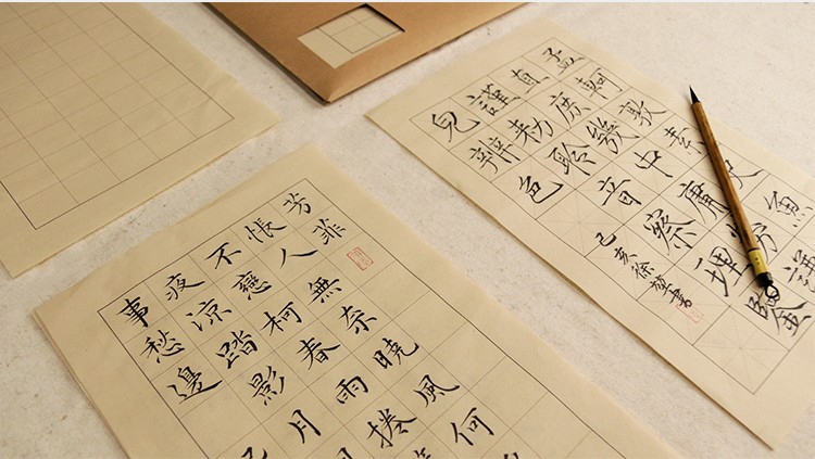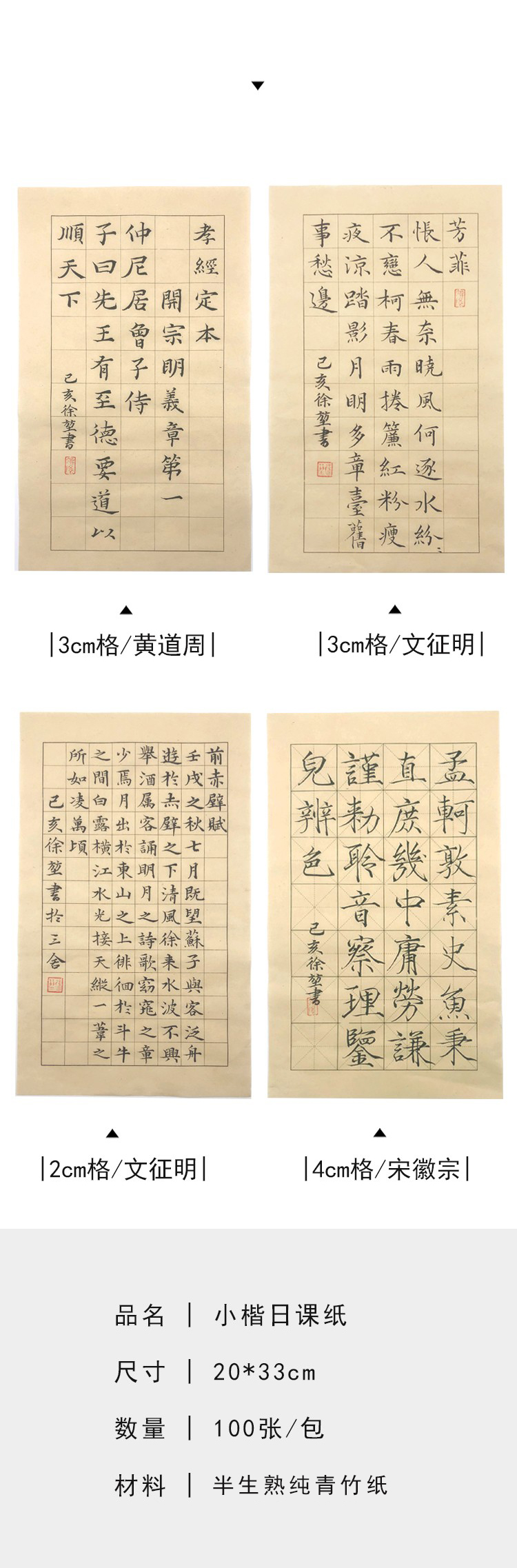 Hesanshe 소문자 일일 레슨 종이 브러시 서예 작업 머리핀 소문자 종이 골동품 Xuan 종이 울 가장자리 종이 수직 사각형