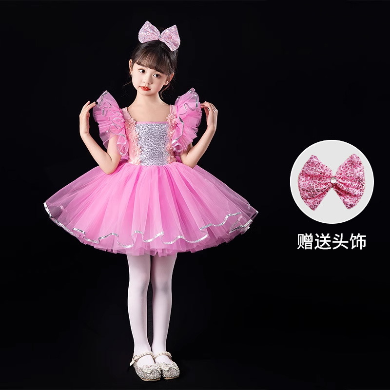 설날 어린이 푹신한 베일 원피스 공연 의상 소녀 공주 원피스 스퀸 유치원 현대 댄스 원피스 공연 의상