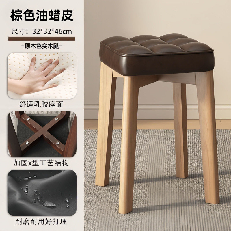 • [브라운 쿠션 + 원목 다리] + 플랫 시트 쿠션 - 업그레이드된 가죽 오일 왁스 가죽