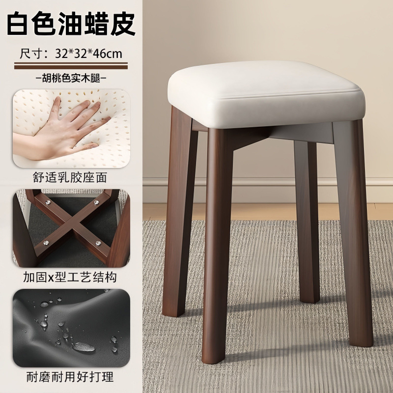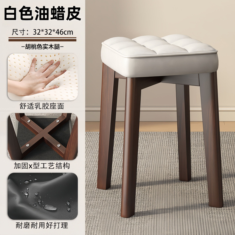 • [화이트 쿠션 + 월넛 다리] + 플랫 시트 쿠션 - 업그레이드된 가죽 오일 왁스 가죽
