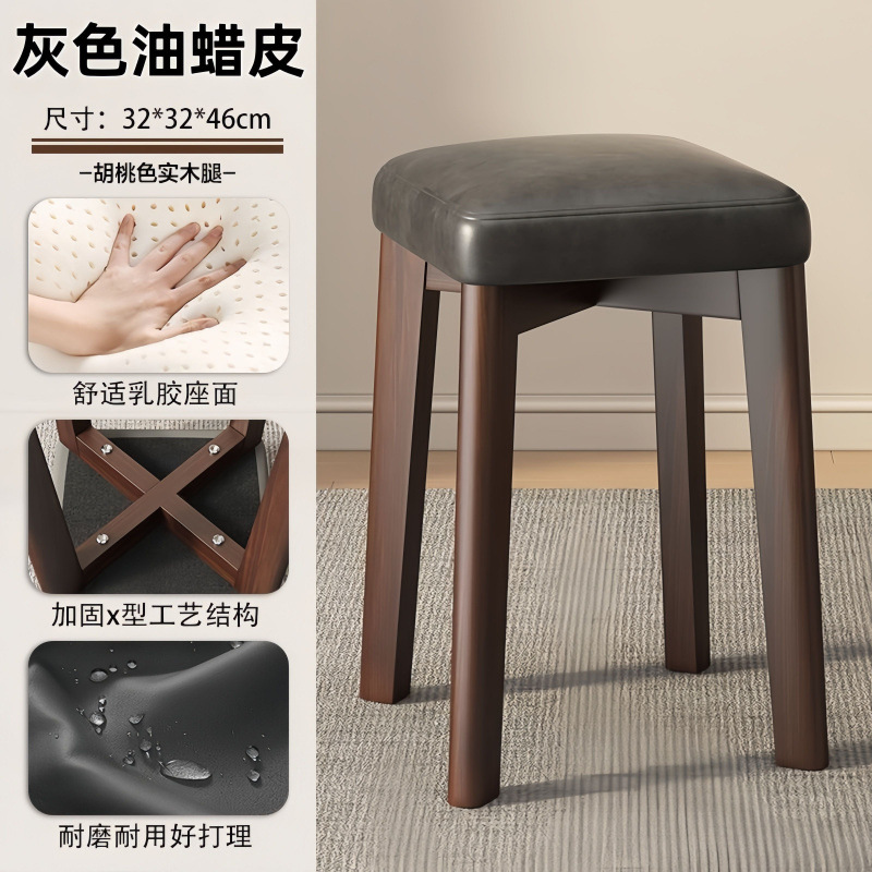 • [그레이 쿠션 + 월넛 다리] + 플랫 시트 쿠션 - 업그레이드된 가죽 오일 왁스 가죽