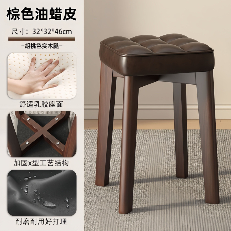 • [브라운 쿠션 + 월넛 다리] + 플랫 시트 쿠션 - 업그레이드된 가죽 오일 왁스 가죽