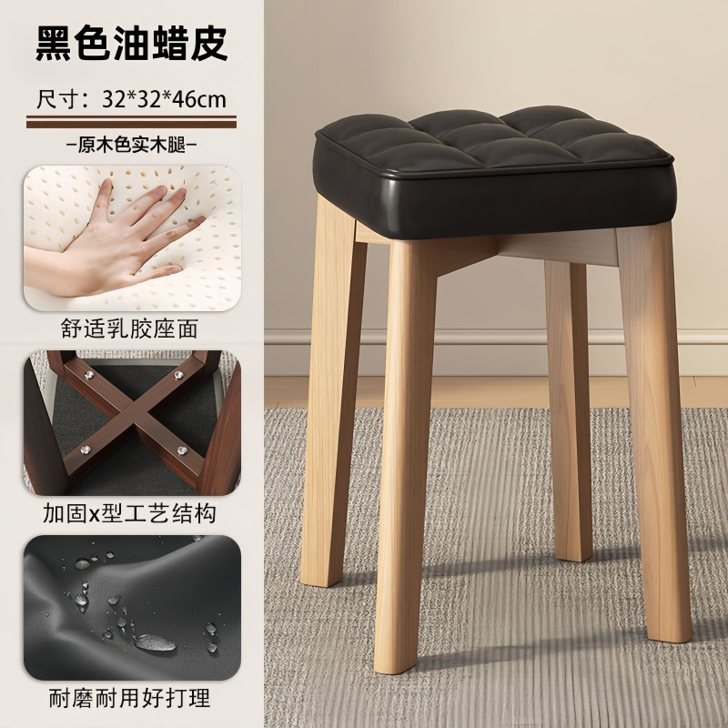 • [블랙 쿠션 + 원목 다리] + 플랫 시트 쿠션 - 업그레이드된 가죽 오일 왁스 가죽