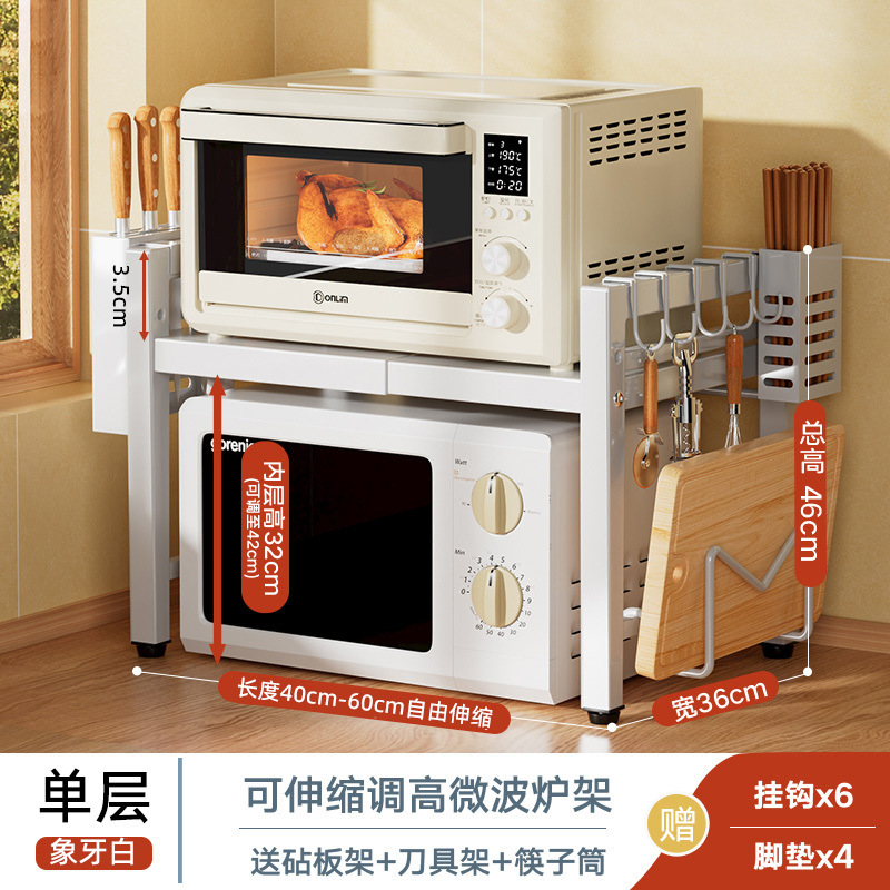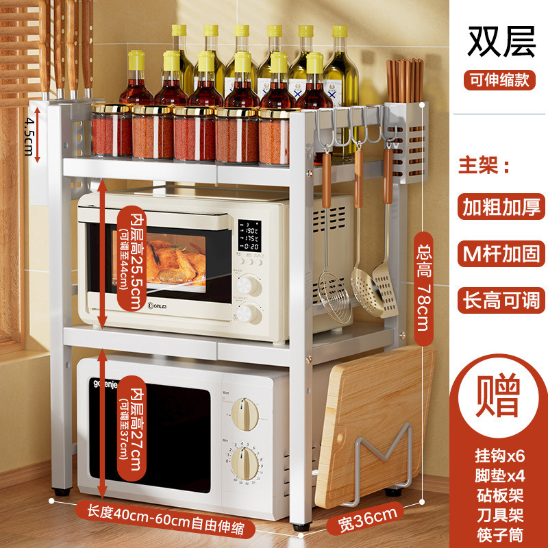 개폐식 전자 레인지 스토리지 랙 가정용 더블 레이어 카운터 탑 데스크탑 스토리지 랙 주방 오븐 밥솥 랙