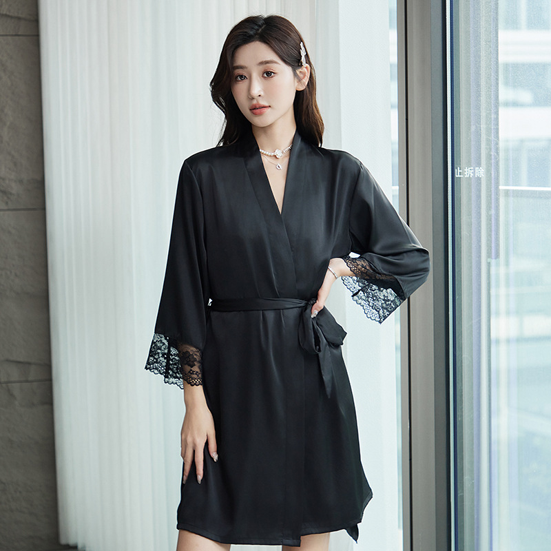 2025 년 봄과 가을 잠옷 아이스 실크 여성의 긴 소매 섹시한 레이스 슬링 나이트 가운 아침 가운 남자 홈 의류 세트스토어 가기