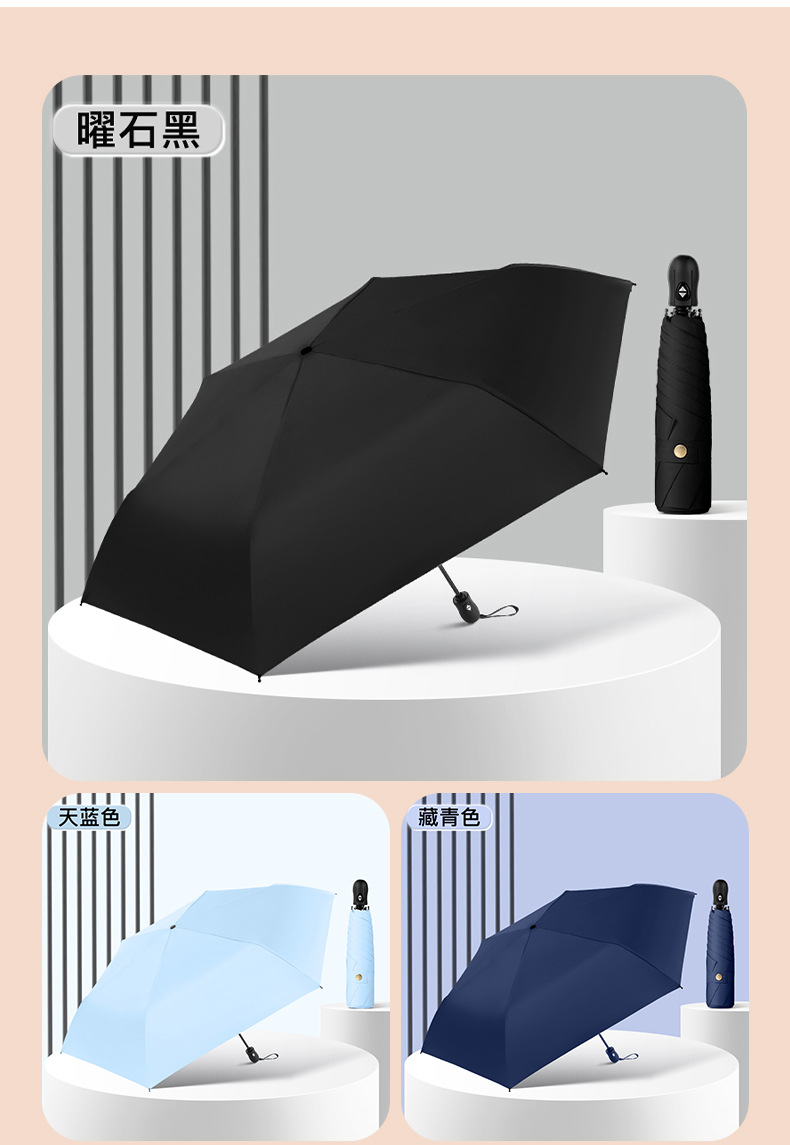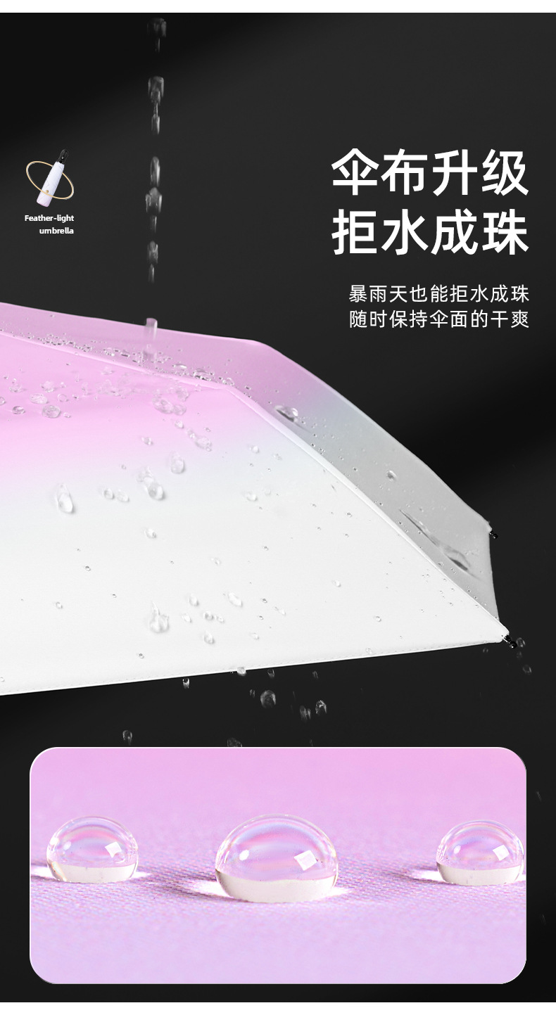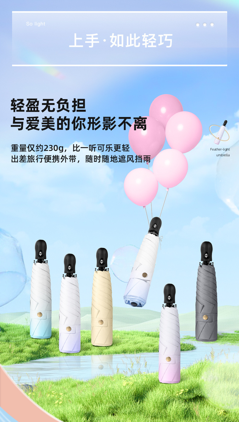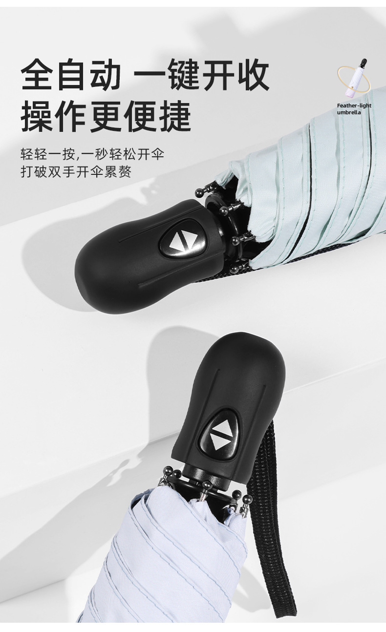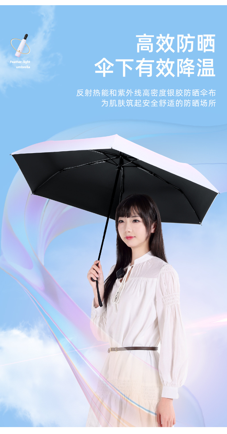 6 뼈 자동 접히는 울트라 라이트 깃털 우산 블랙 접착제 선 스크린 태양 우산 숙녀 선물 우산 맞춤 로고