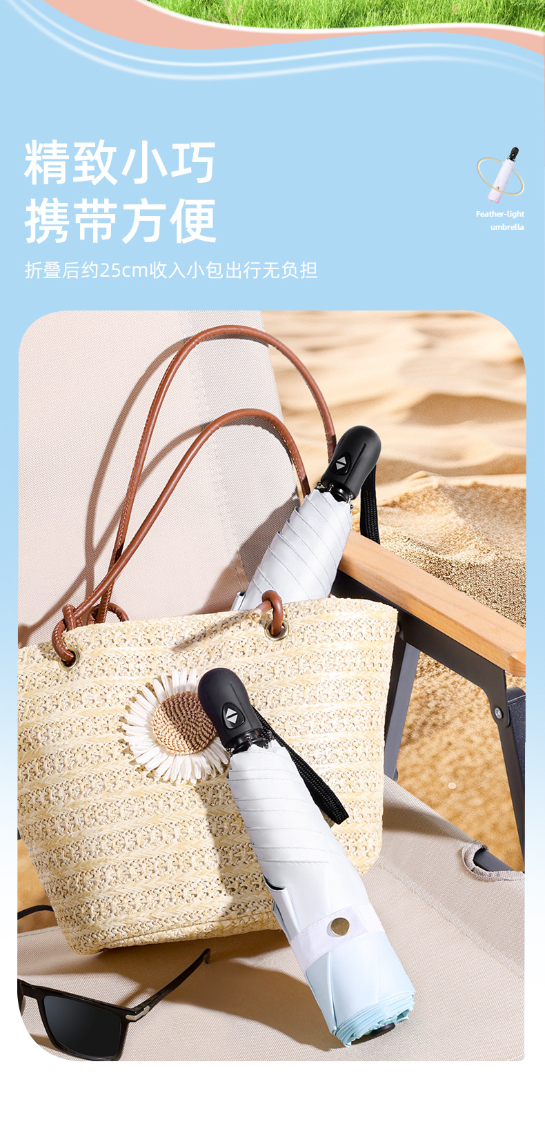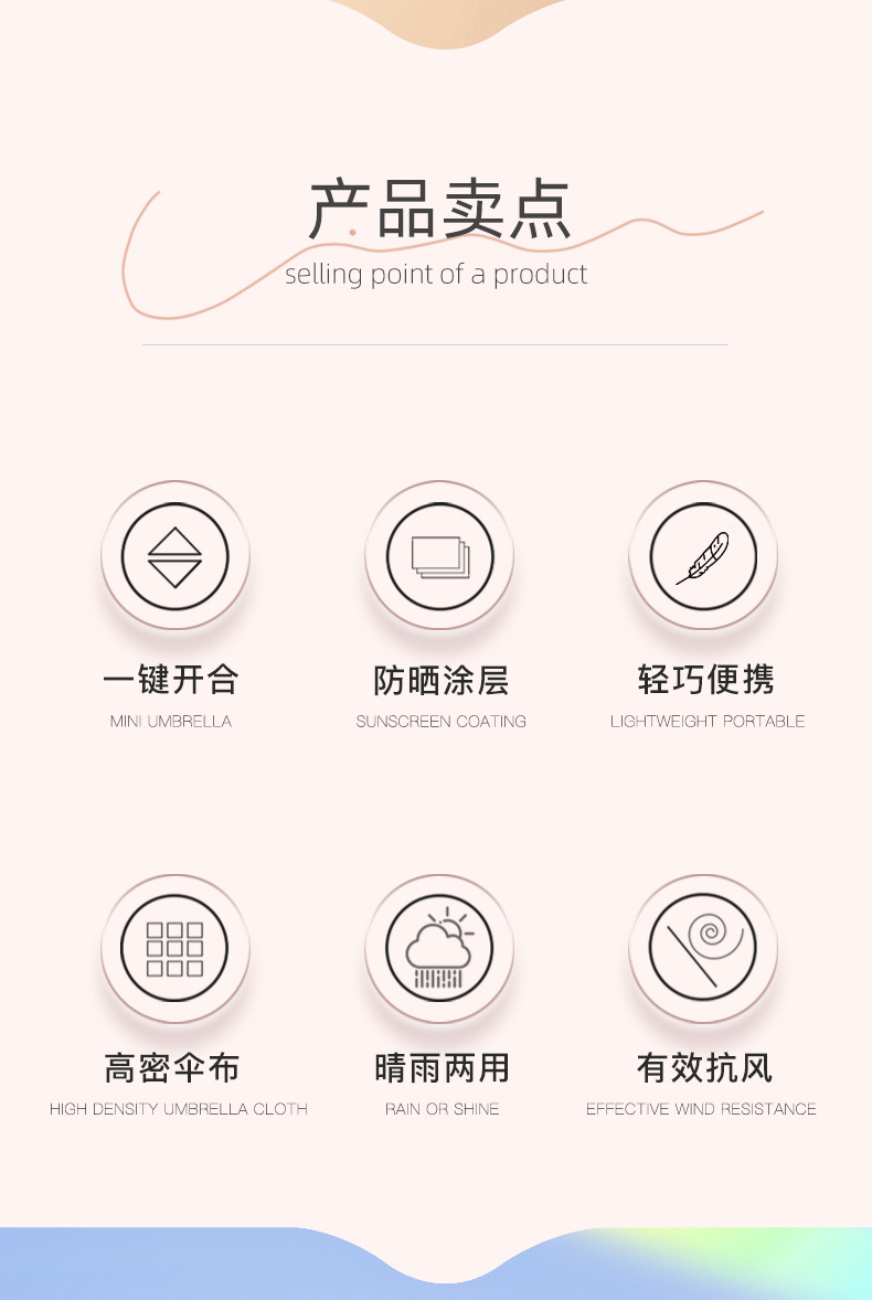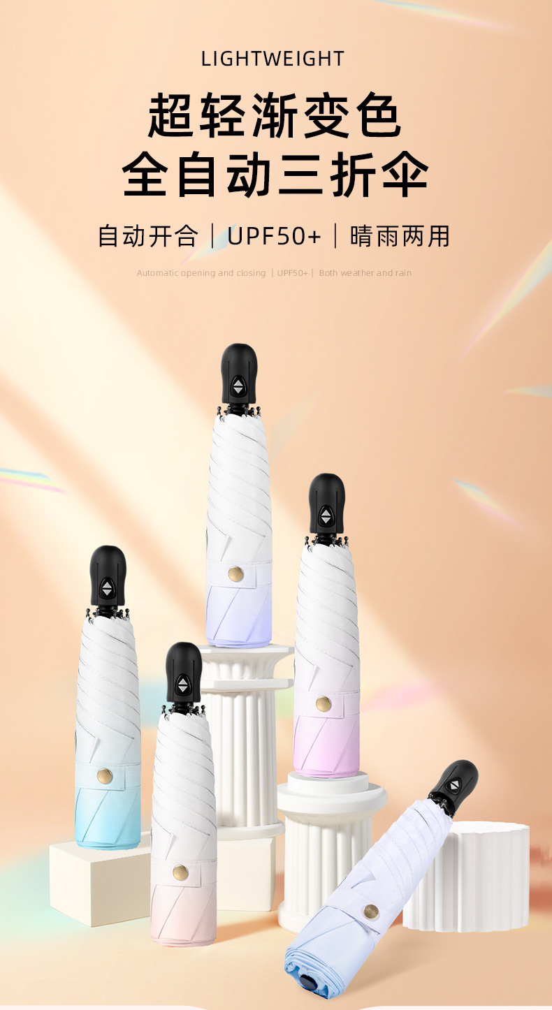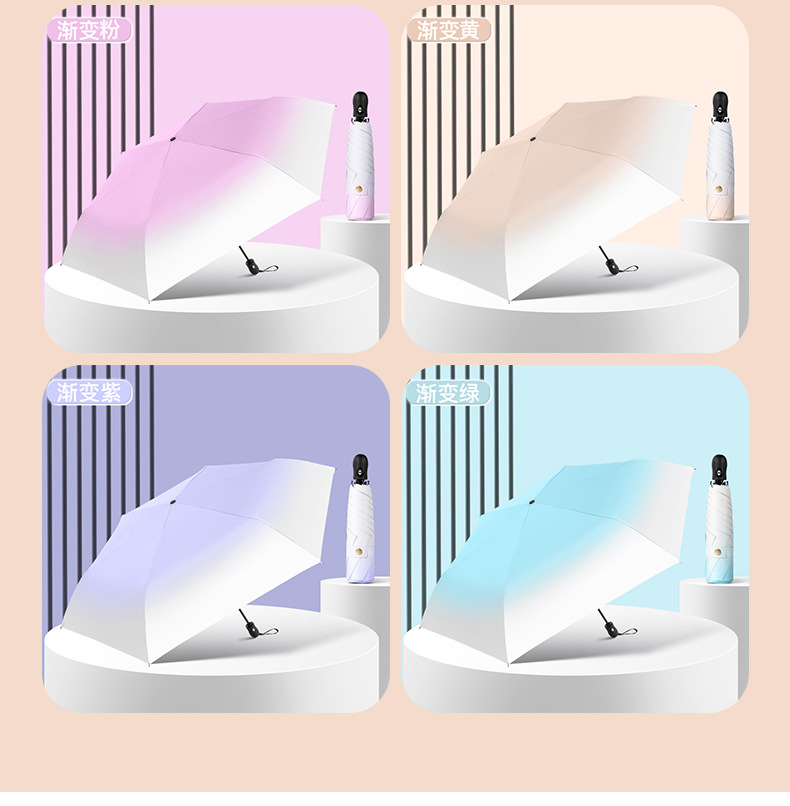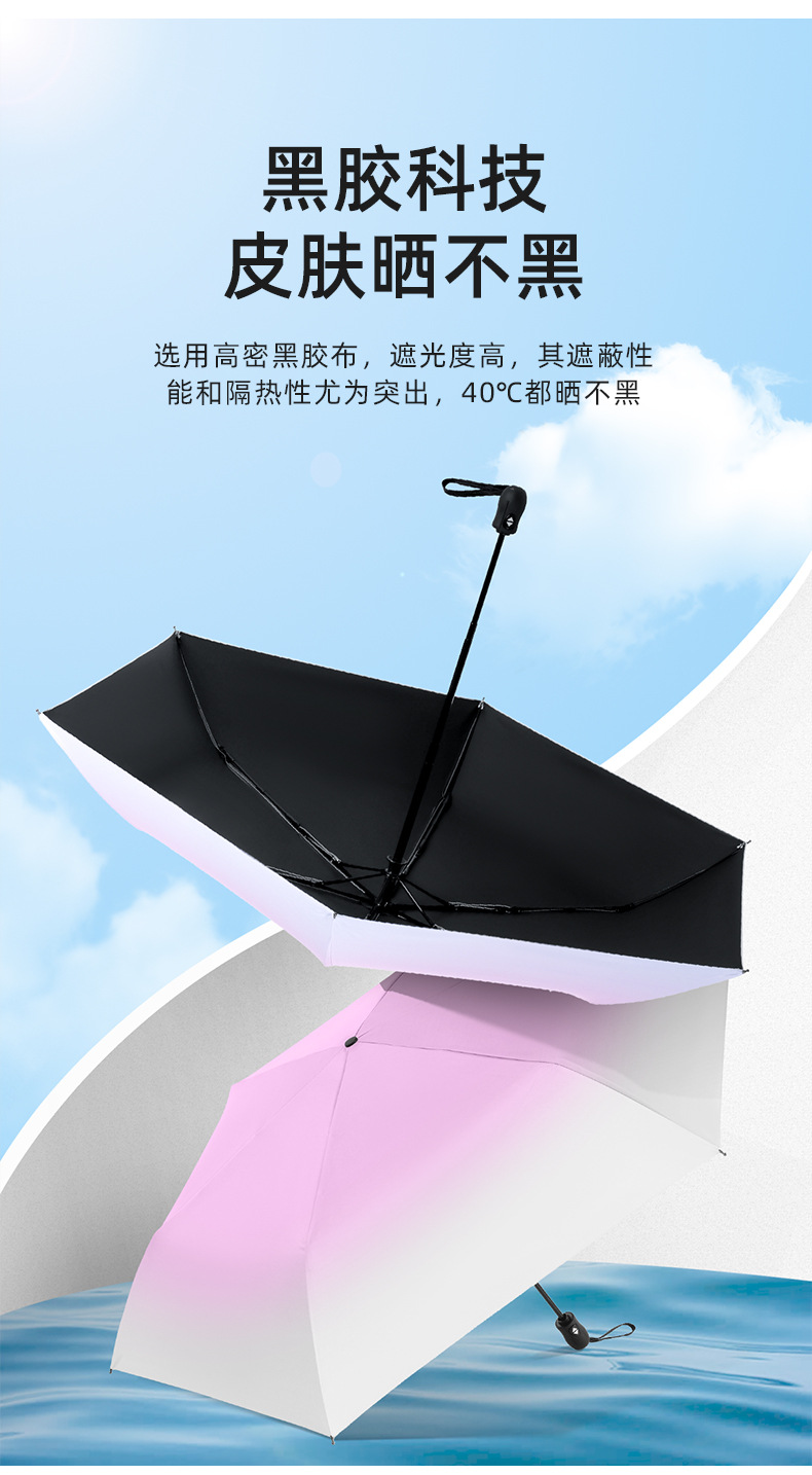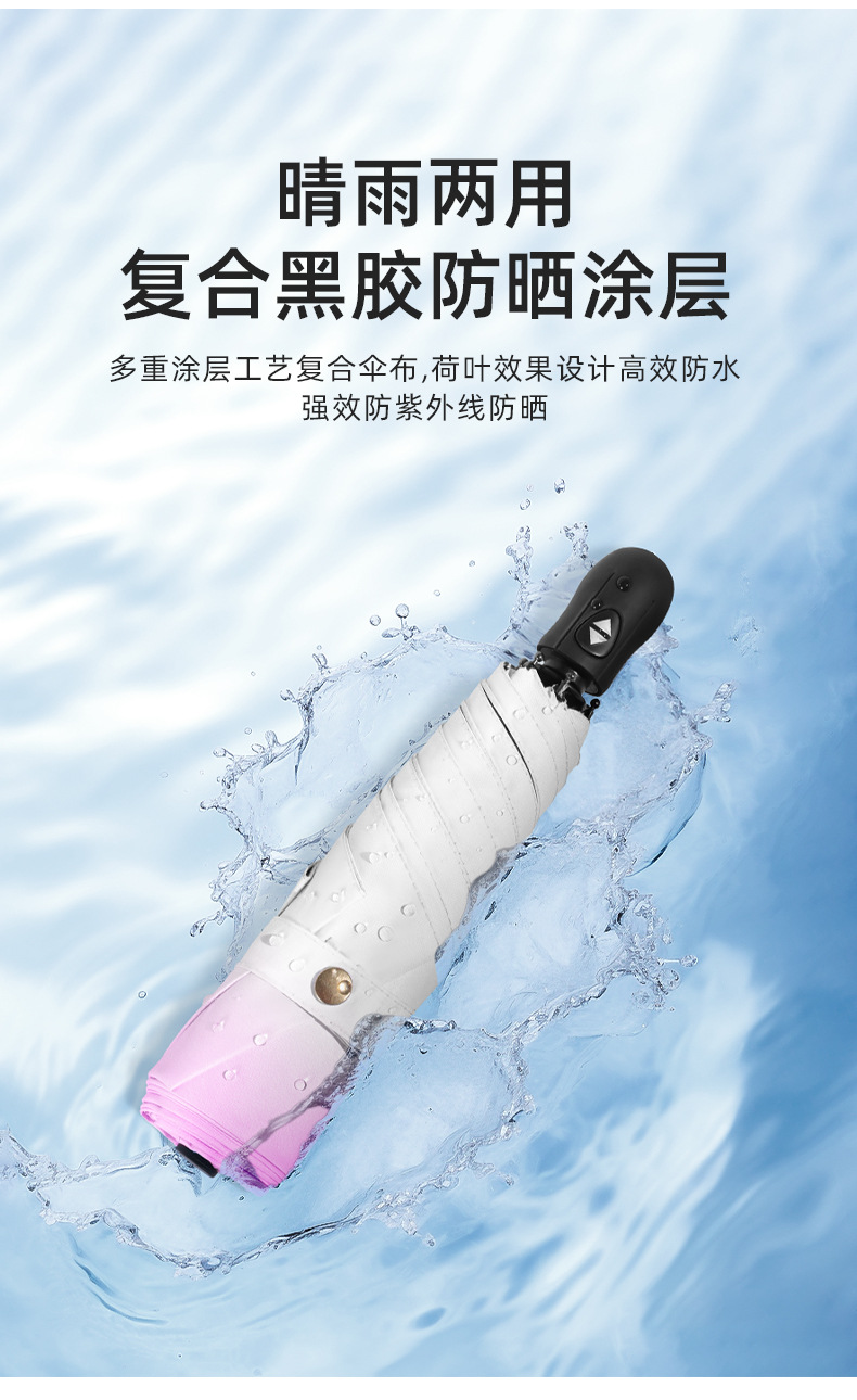 6 뼈 자동 접히는 울트라 라이트 깃털 우산 블랙 접착제 선 스크린 태양 우산 숙녀 선물 우산 맞춤 로고