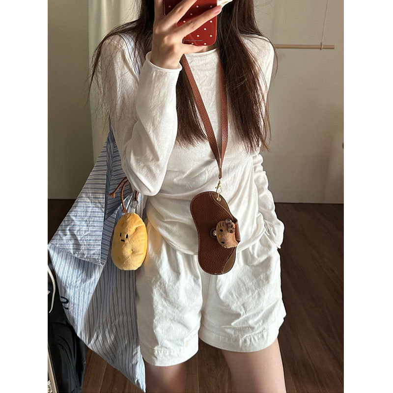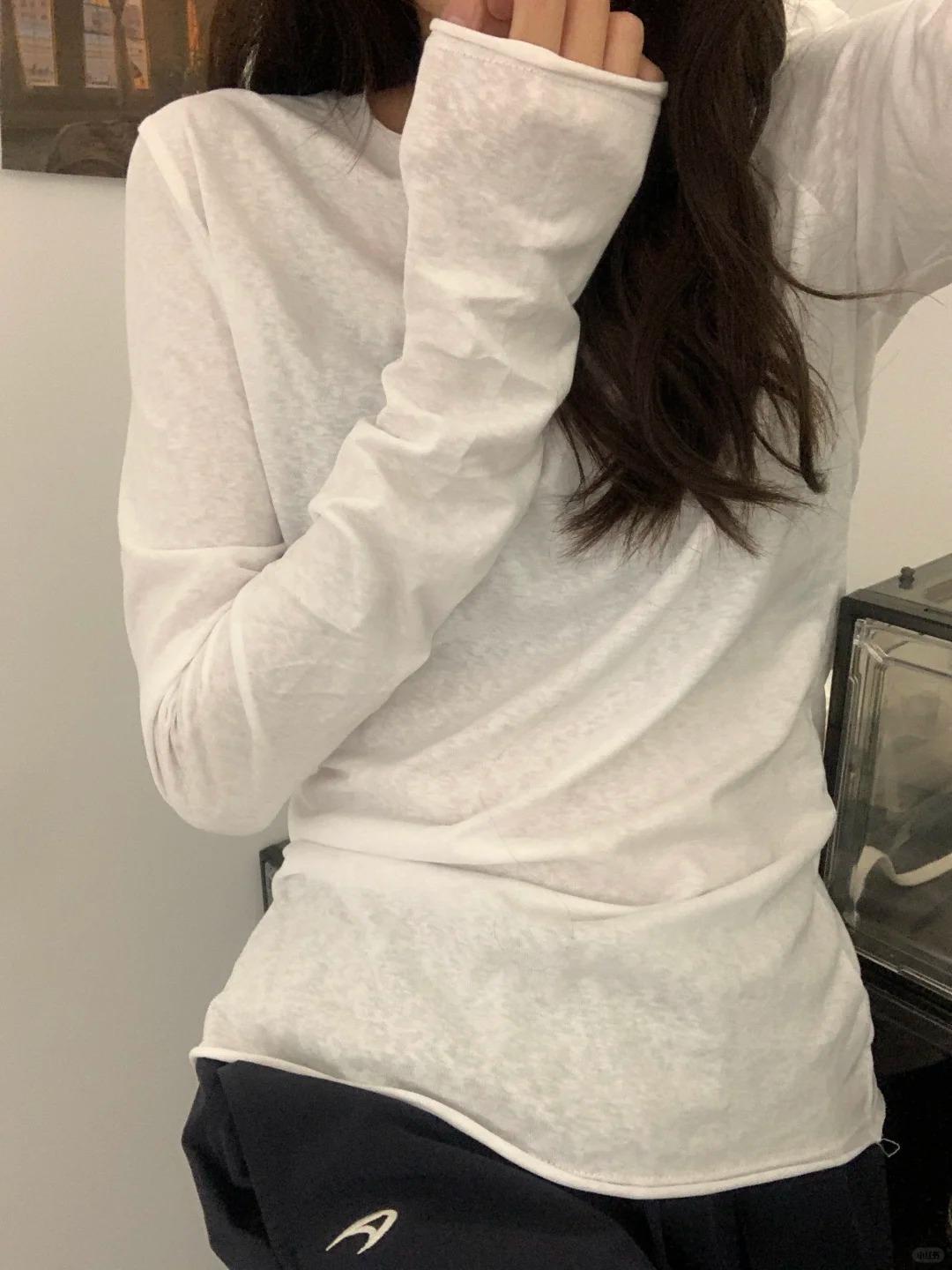 솔리드 컬러베이스 셔츠 여성용 얇은 봄과 가을 컬링 휴식 긴팔 티셔츠 기본 간단한 내부 상단 트렌디스토어 가기