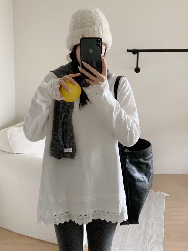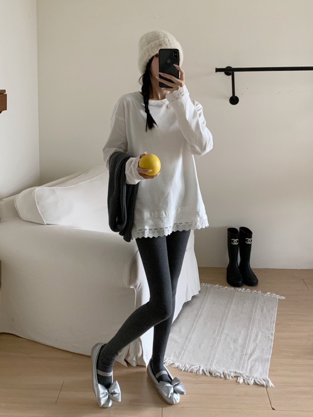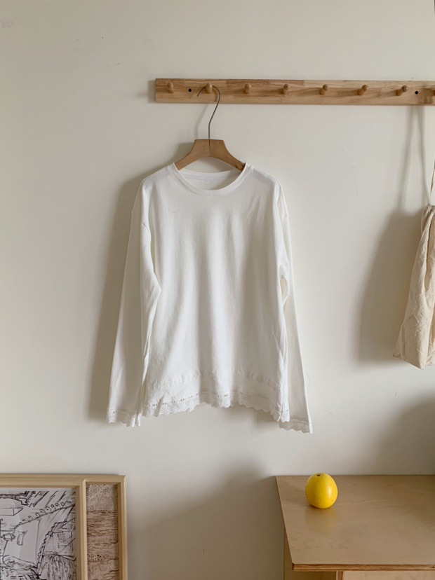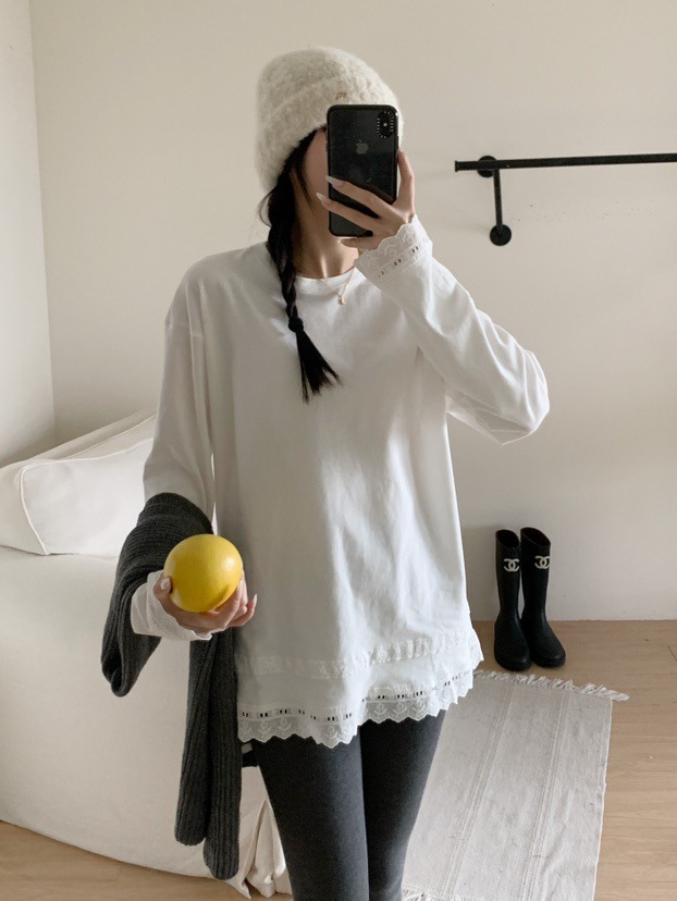 솔리드 컬러 레이스 스티칭베이스 티셔츠 2025 심플 한국식 라운드 넥 슬리밍 올 매치 느슨한 풀오버 탑스토어 가기