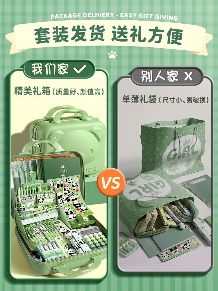 팬더 문구 선물 상자 세트 소녀 학교 오프닝 선물 가방 졸업 선물 학교 용품 Daquan 초등학생 생일