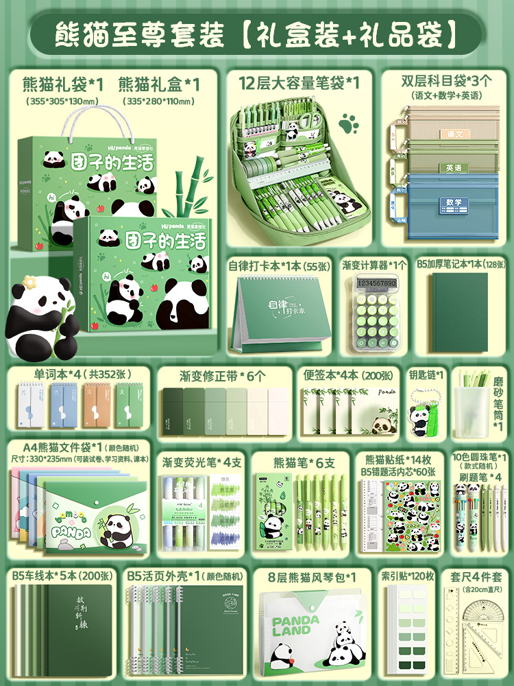 팬더 문구 선물 상자 세트 소녀 학교 오프닝 선물 가방 졸업 선물 학교 용품 Daquan 초등학생 생일스토어 가기