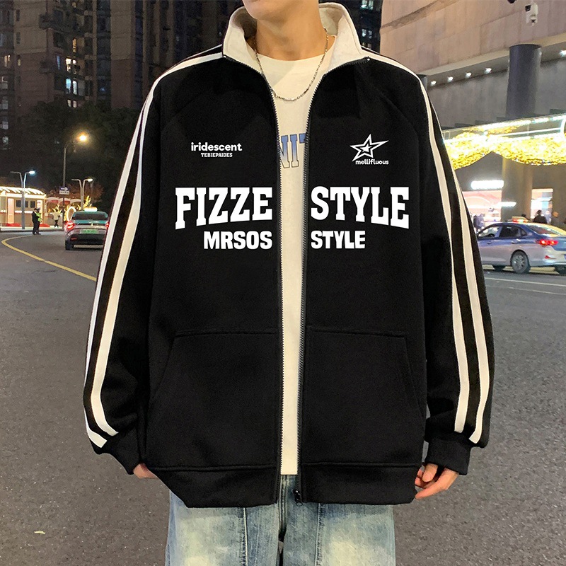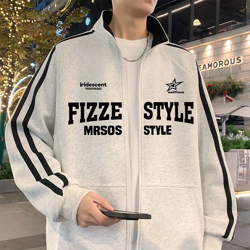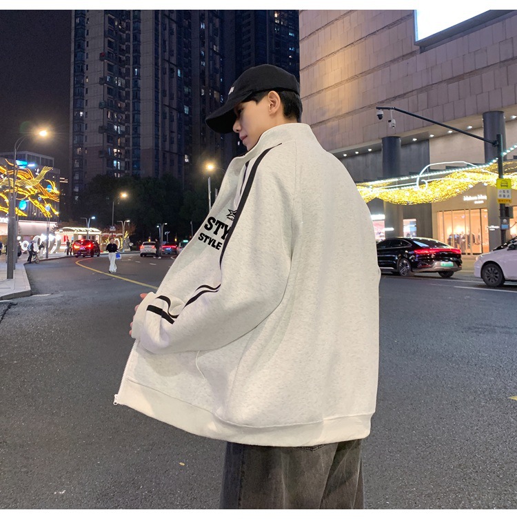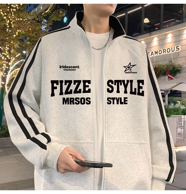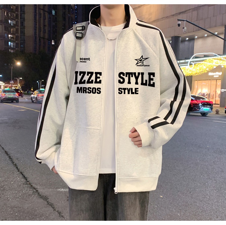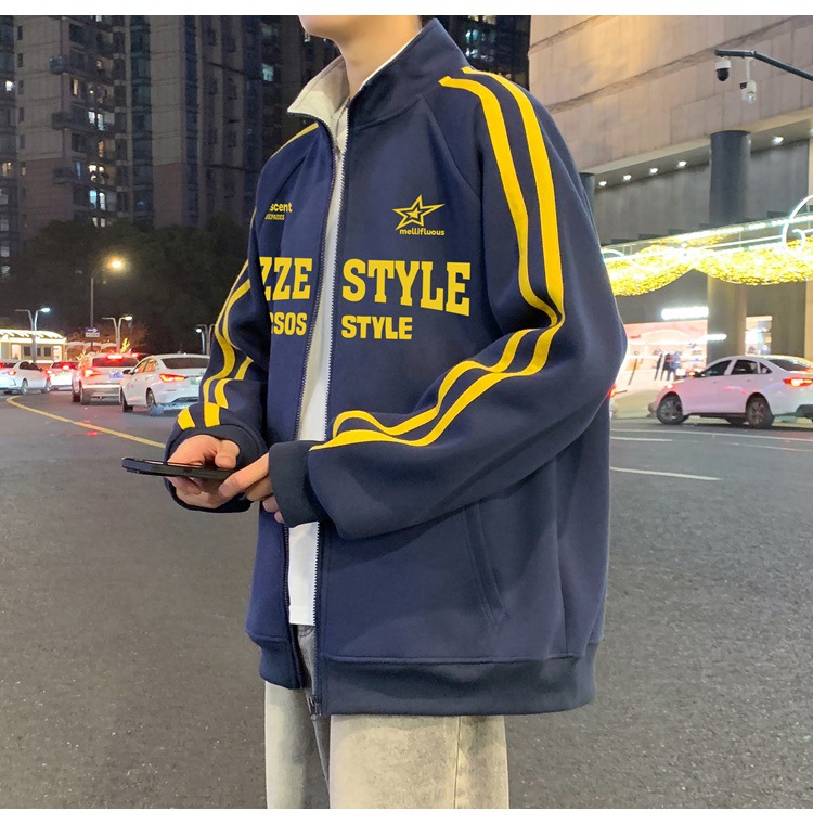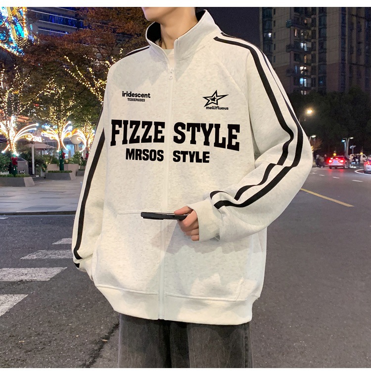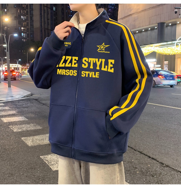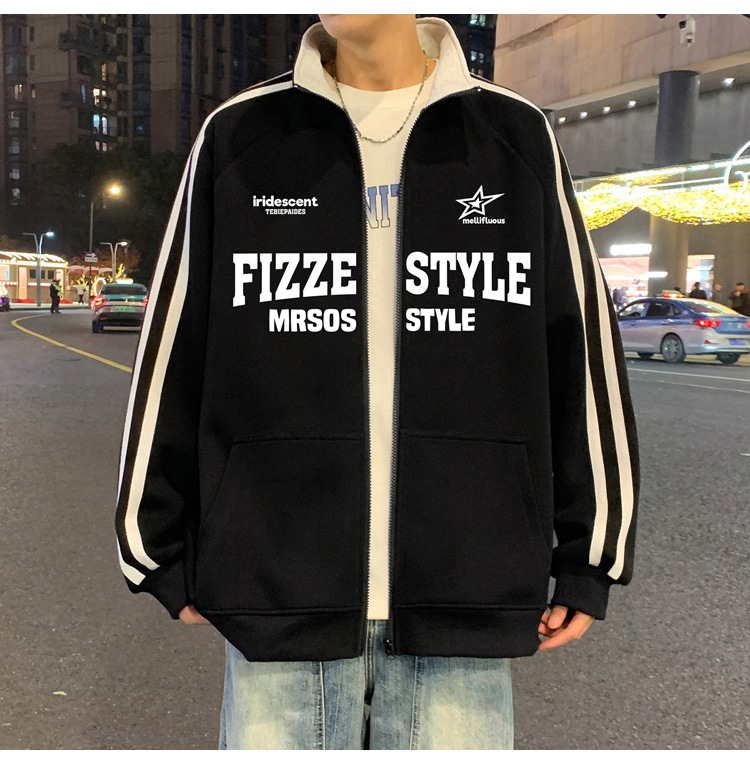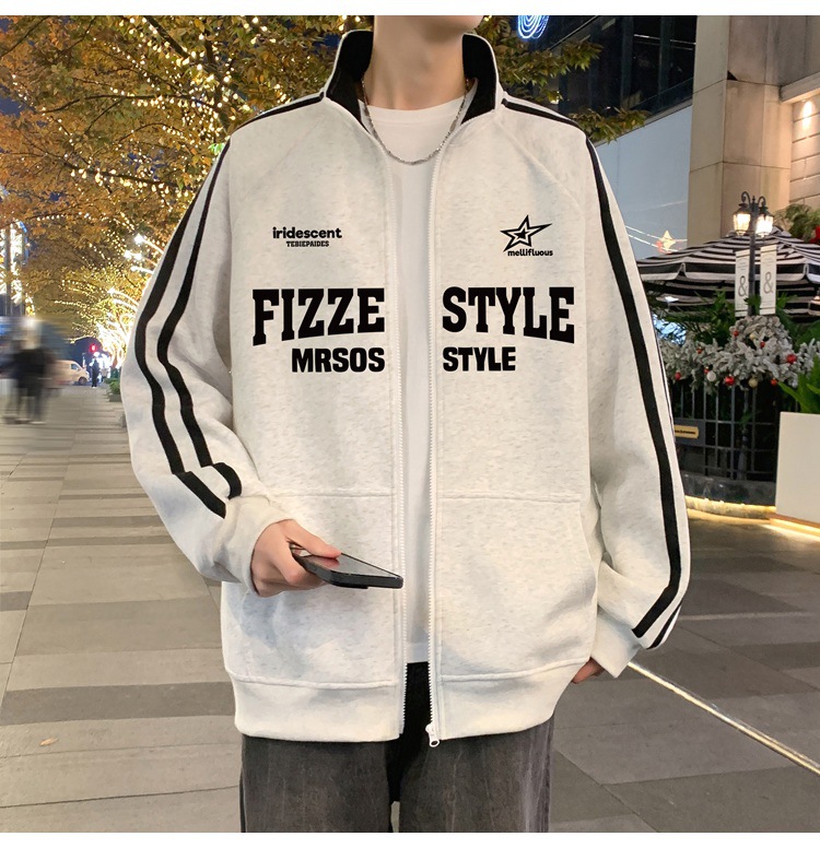 수직 칼라 지퍼 카디건 스웨터 남자 봄과 가을 뉴 스트라이프 코트 오버 사이즈 미국 캐주얼 스포츠 탑스토어 가기
