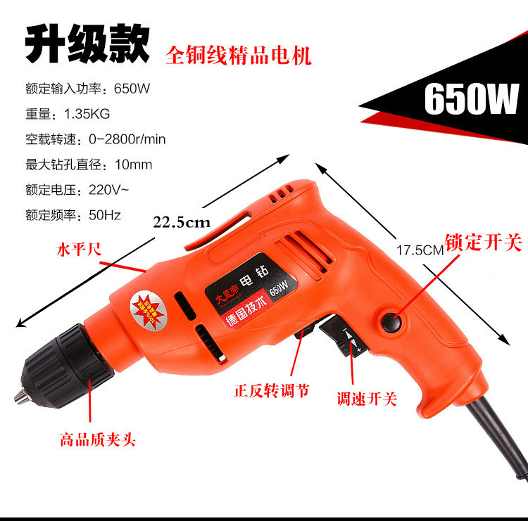 다기능 손 전기 드릴 손 총 드릴 산업 등급 전진 및 역방향 속도 조절 가정용 소형 전기 공구스토어 가기
