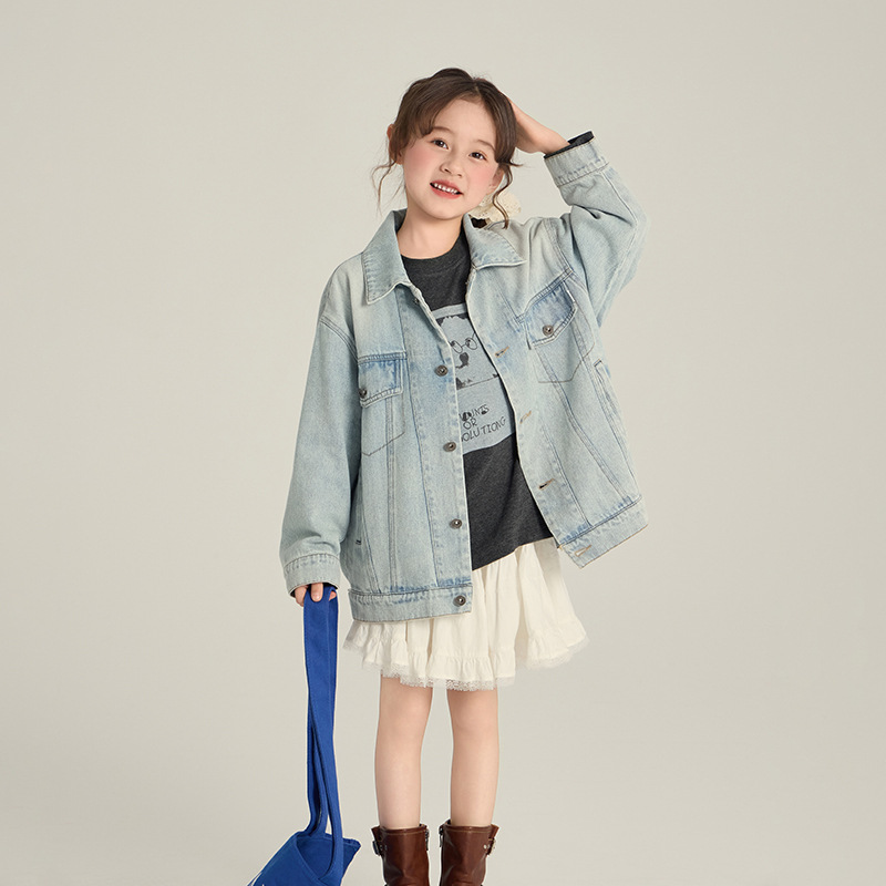 Aimo Beibei 소년 소녀 한국 스타일 유행 데님 재킷 봄 새로운 스타일 어린이 느슨한 달콤하고 시원한 다목적 재킷 탑스토어 가기