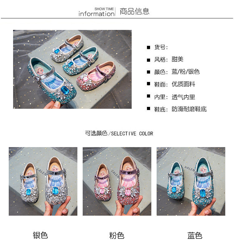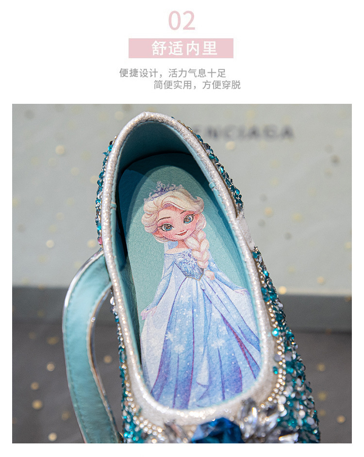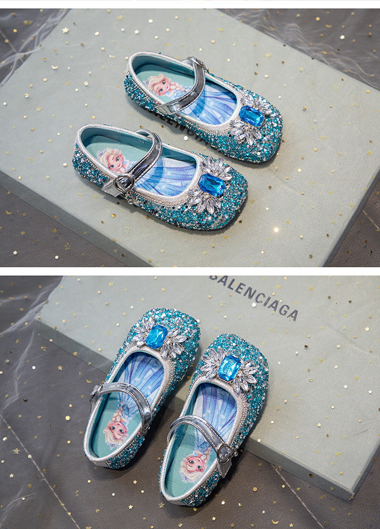 소녀 엘사 공주 신발 2025 봄과 가을 새로운 아기 크리스탈 신발 어린이 성능 부드러운 바닥 린스 신발 싱글 신발스토어 가기