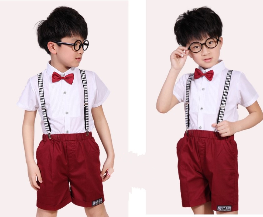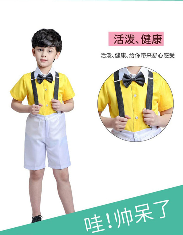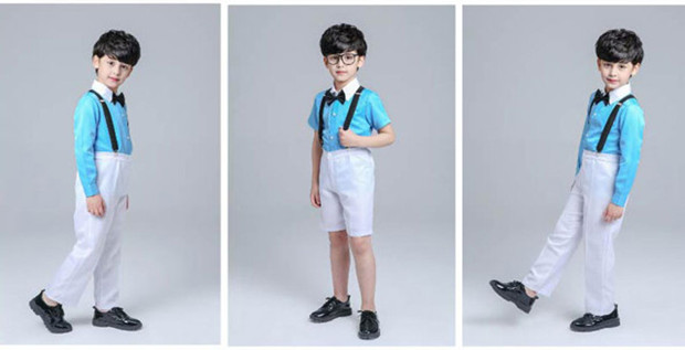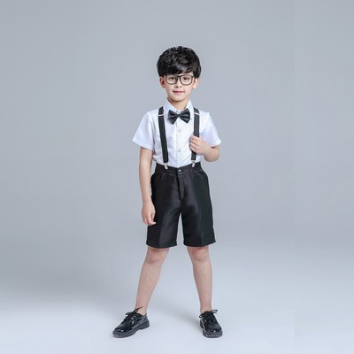 2024 년 어린이 공연 의류 꽃소녀 원피스 소년 합창 공연 의류 스트랩 어린이 의류 졸업 반팔 세트