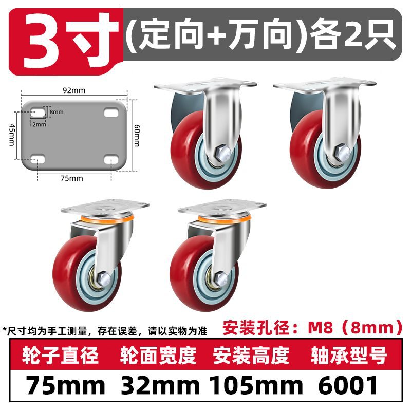 유니버설 휠 3 인치 헤비 듀티 브레이크 유니버설 소형 휠 지향성 휠 40000 휠 음소거 휠 액세서리