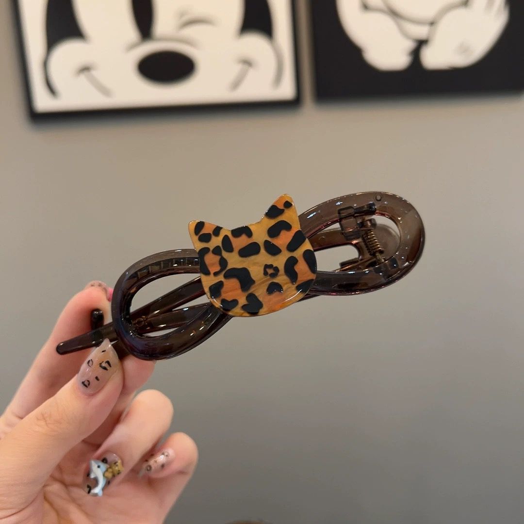 귀엽고 귀여운 레오파드 고양이 트위스트 클립 하이 센스 헤드 클립 여성용 헤어 헤드웨어