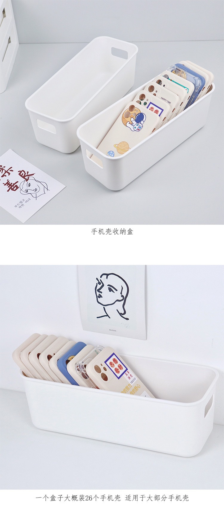 높은 색상 값 간단한 순수한 흰색 저장 상자 데스크탑 손 계정 스티커 작은 카드 휴대 전화 케이스 잡화 저장 방진 캐비닛