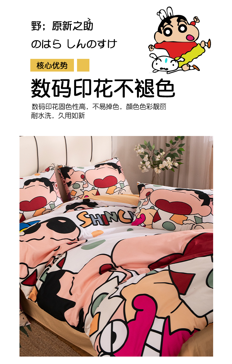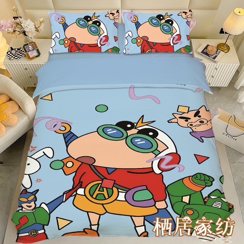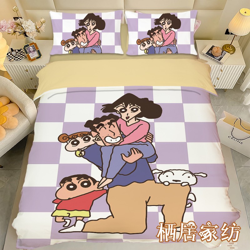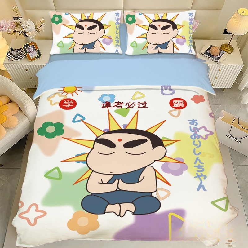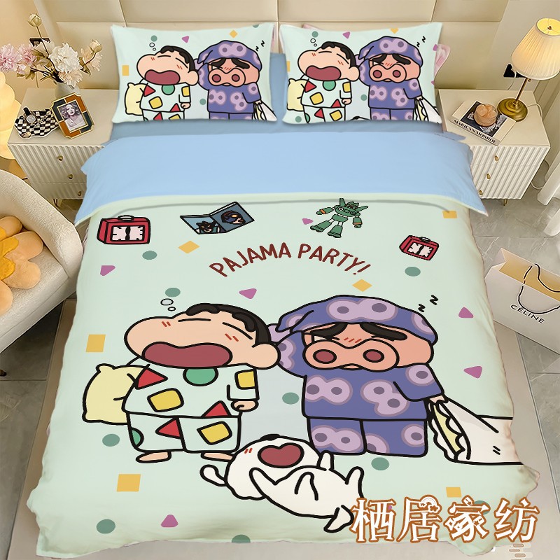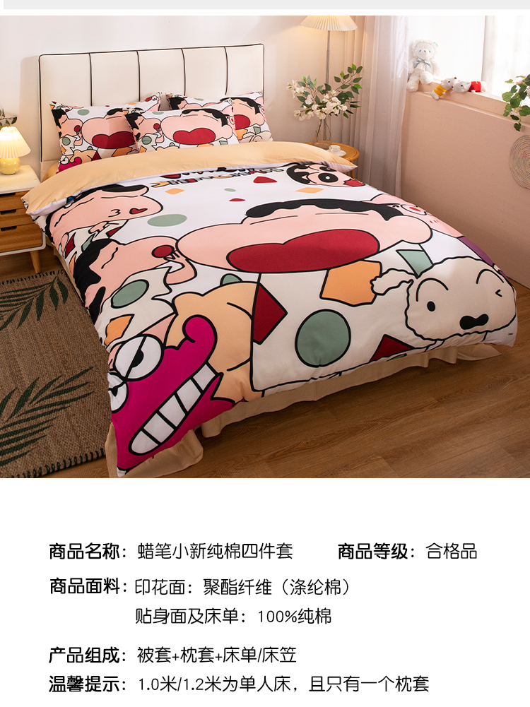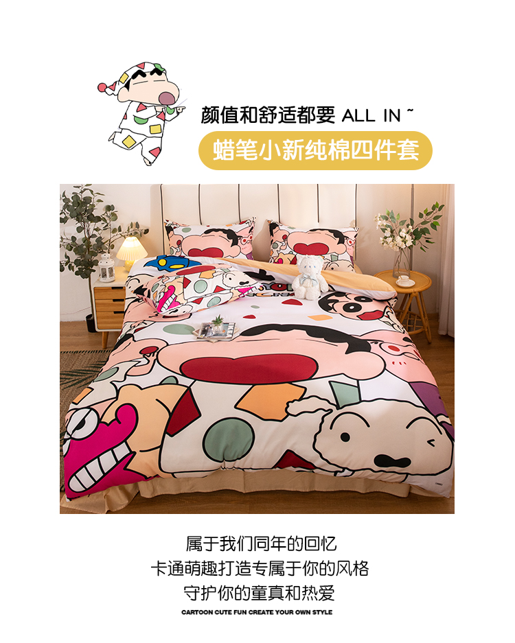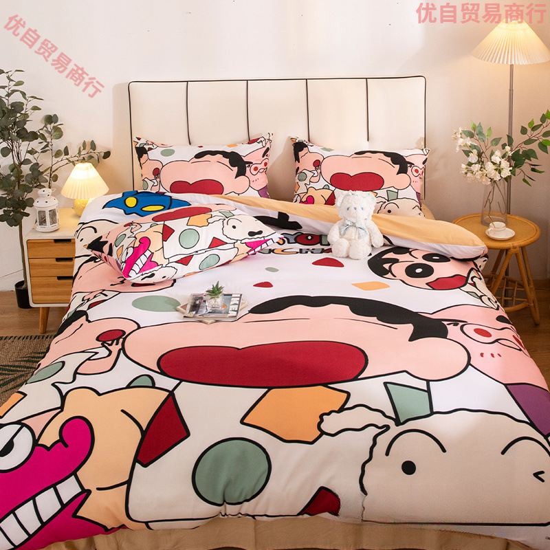 크레용 작은 새로운 4 피스 세트 면 만화 침구 퀼트 커버 침대 시트 학생 기숙사 3 피스 세트스토어 가기