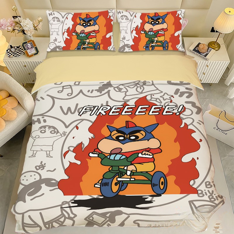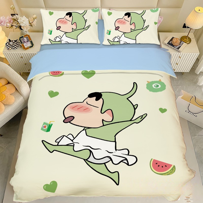 크레용 작은 새로운 4 피스 세트 면 만화 침구 퀼트 커버 침대 시트 학생 기숙사 3 피스 세트