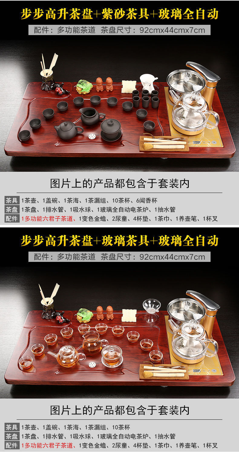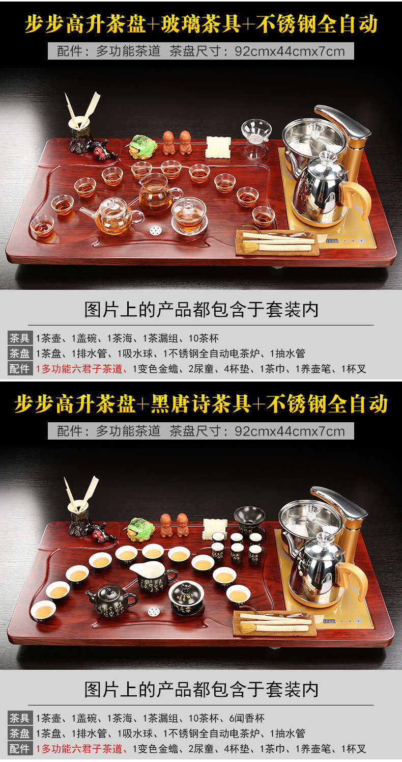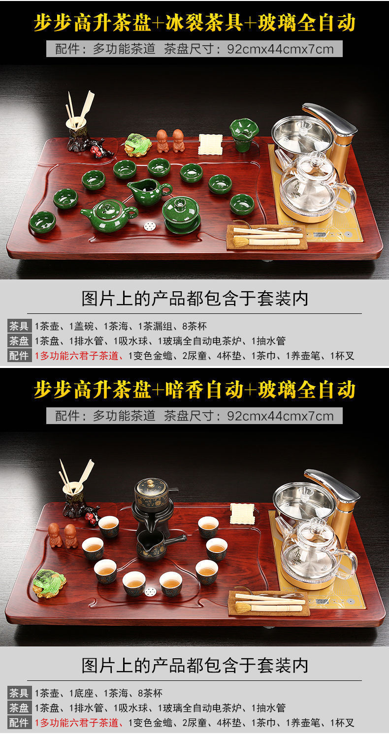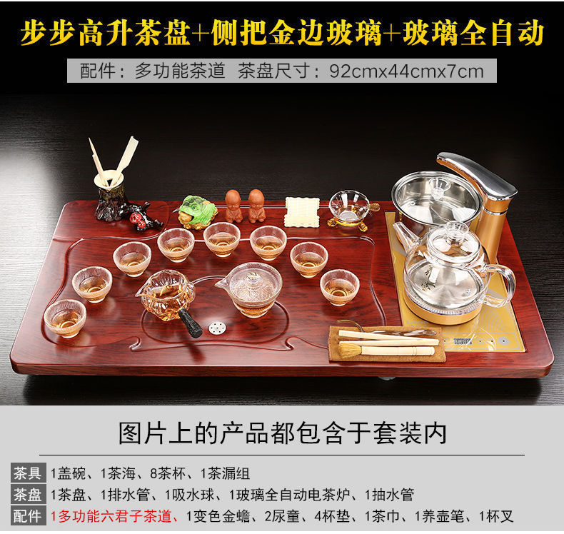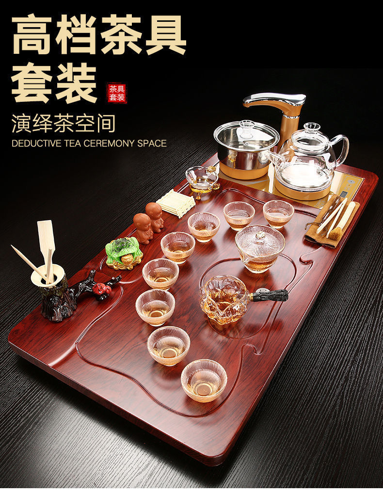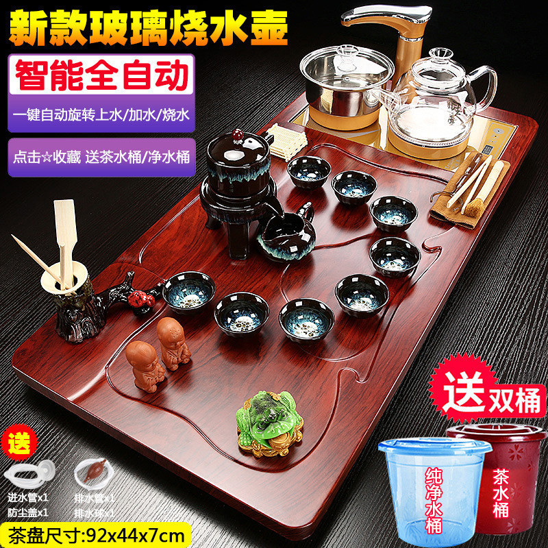 새로운 스타일의 유리 쿵푸 차 세트 세트 가정 자동 물 주전자 통합 차 트레이 차 테이블 다도 세트