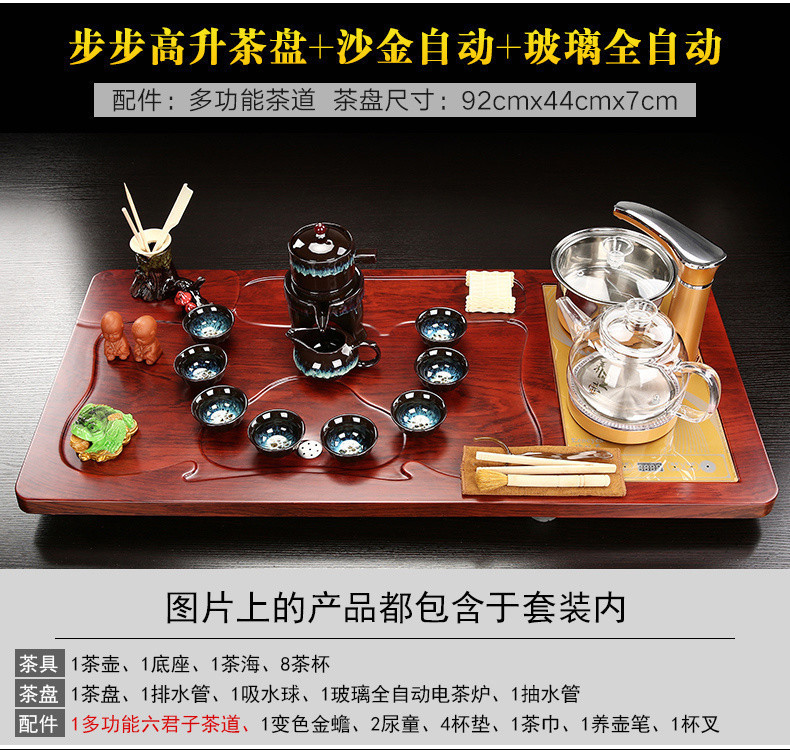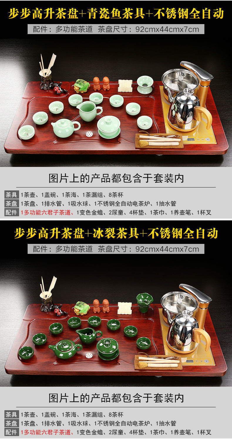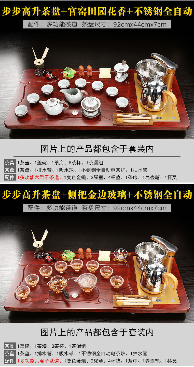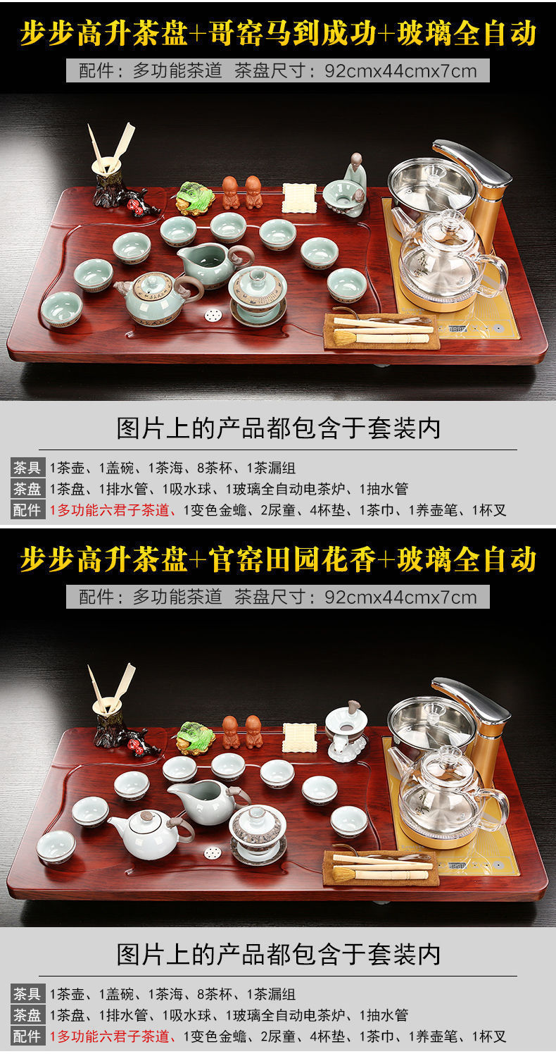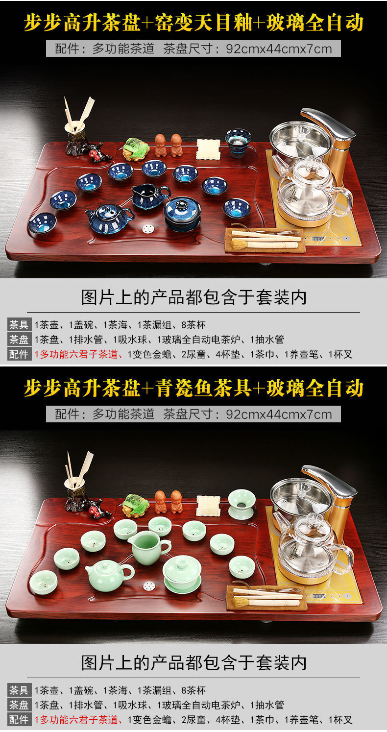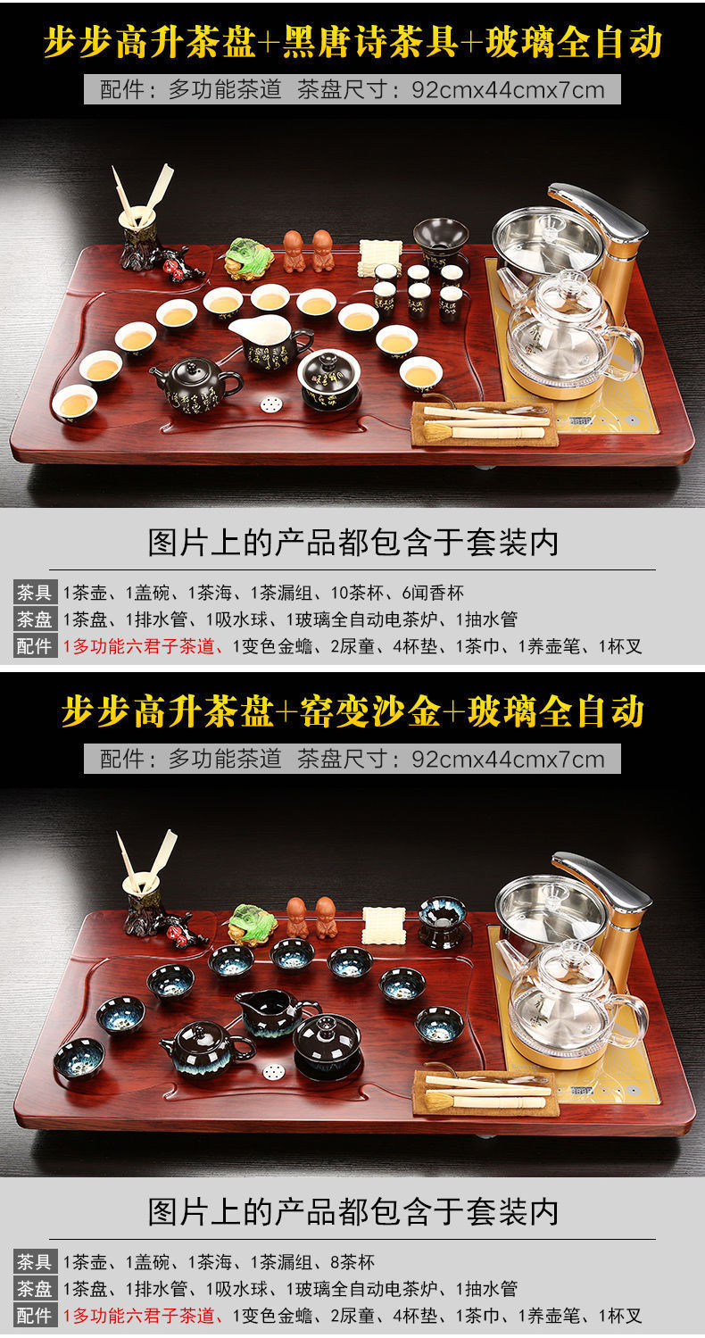 새로운 스타일의 유리 쿵푸 차 세트 세트 가정 자동 물 주전자 통합 차 트레이 차 테이블 다도 세트