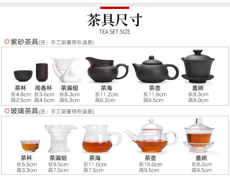 • 14 로즈우드 차 트레이/보라색 점토 차 세트/유리 주전자