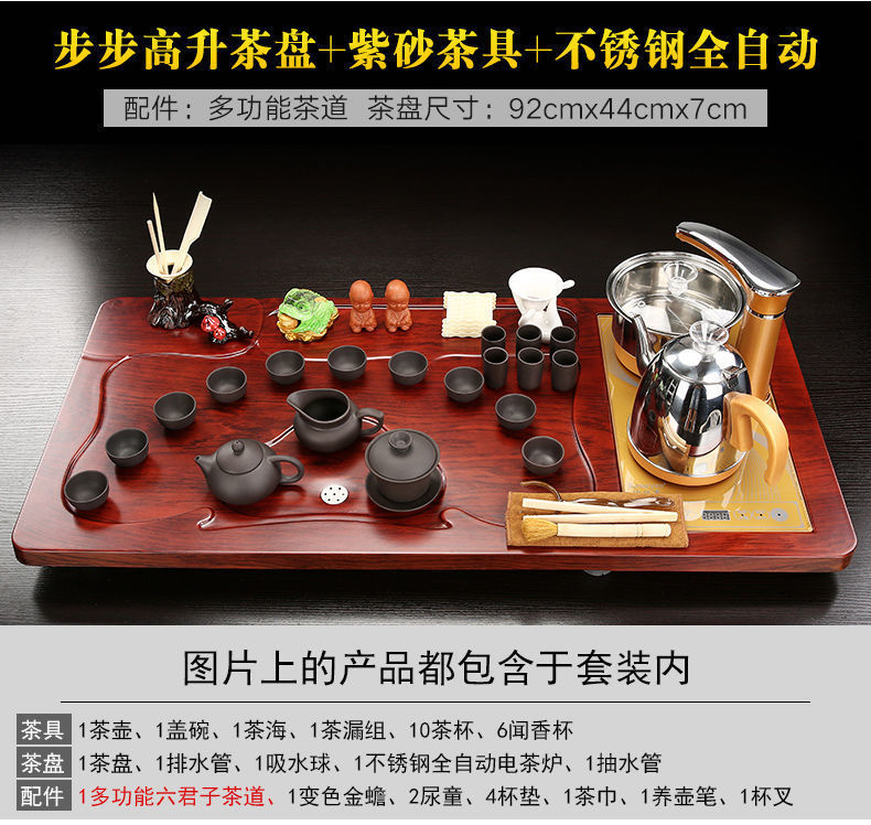 • 03 로즈우드 티 트레이/보라색 점토 차 세트/스테인리스 주전자