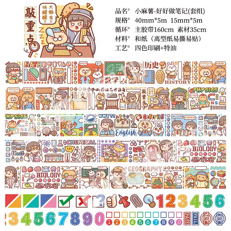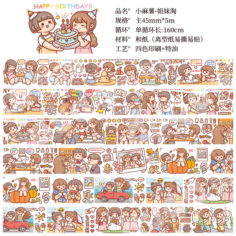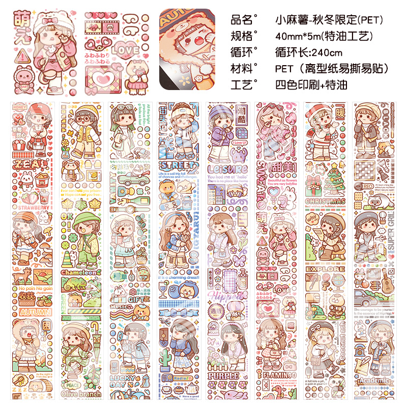 신제품 작은 감자 테이프 Wang Fei Meow 실행 풀 세트 서브 포장 풀 롤 가을 및 겨울 한정 스티커 장식 소재 소녀의 마음