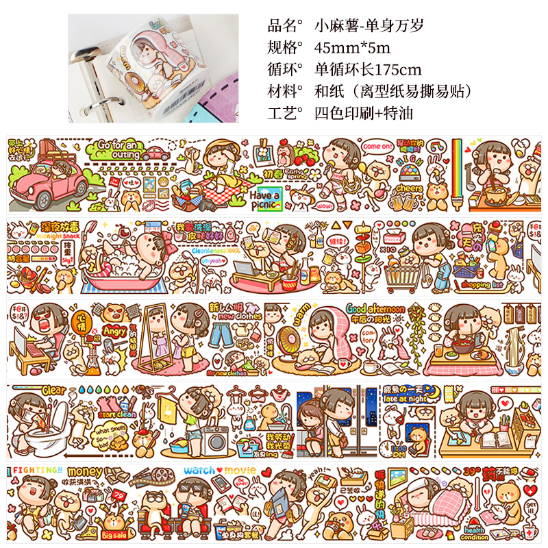 신제품 작은 감자 테이프 Wang Fei Meow 실행 풀 세트 서브 포장 풀 롤 가을 및 겨울 한정 스티커 장식 소재 소녀의 마음스토어 가기