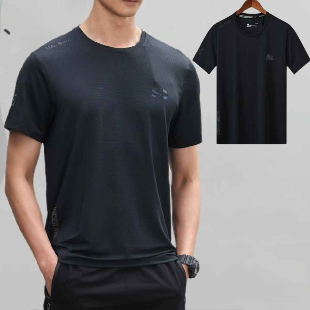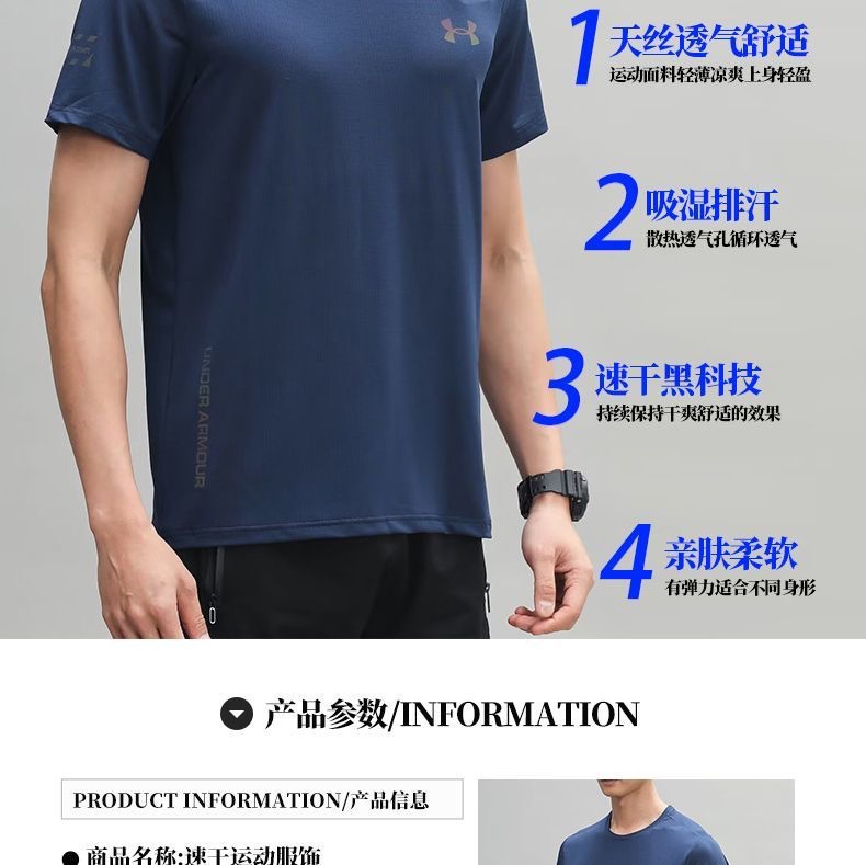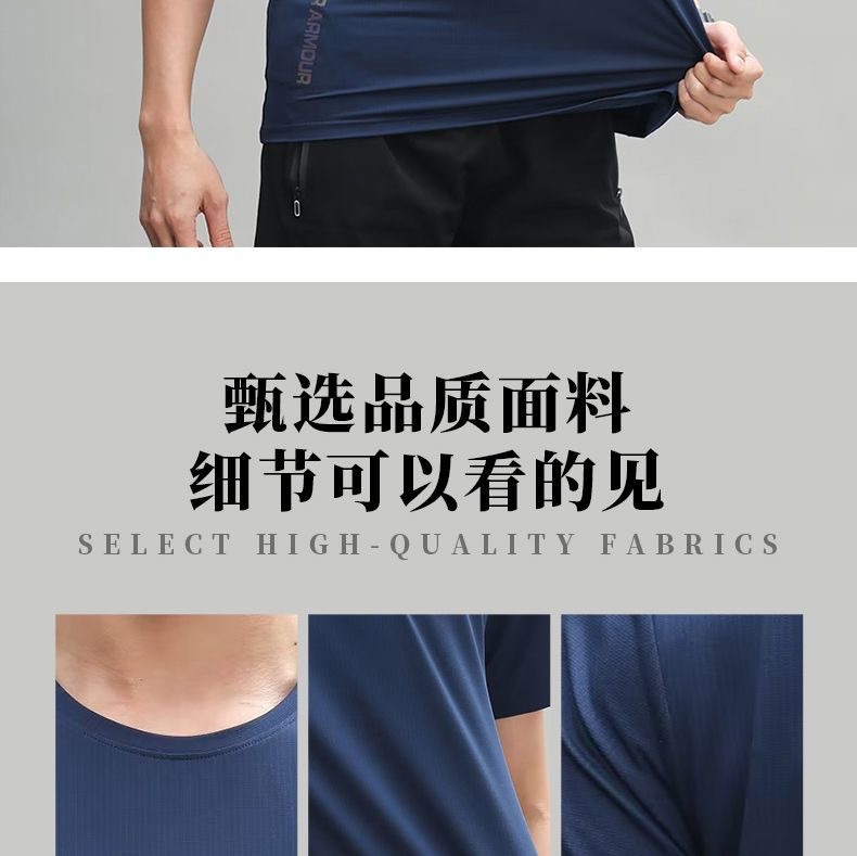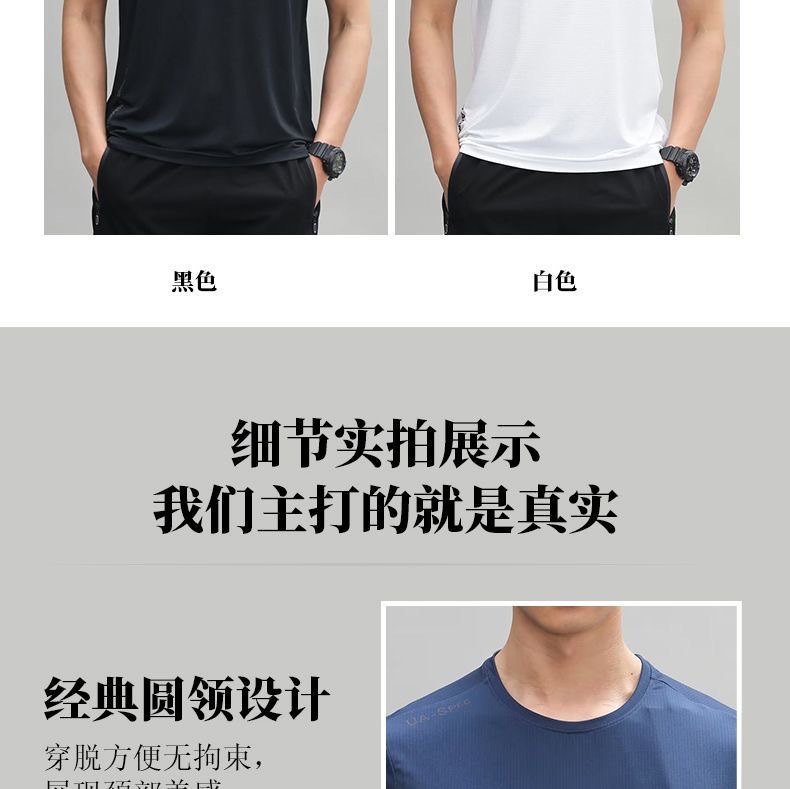 2025 뉴 여름 아이스 실크 티셔츠 속건성 반팔 남성 스포츠 야간 달리기 반사 라운드 넥 얇은 느슨한 반팔스토어 가기