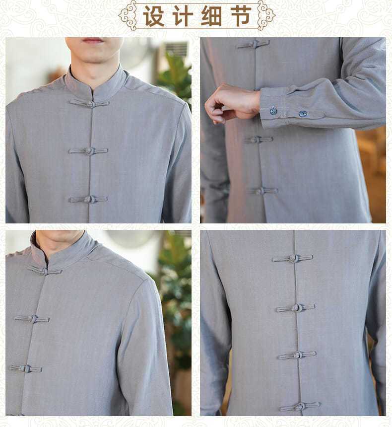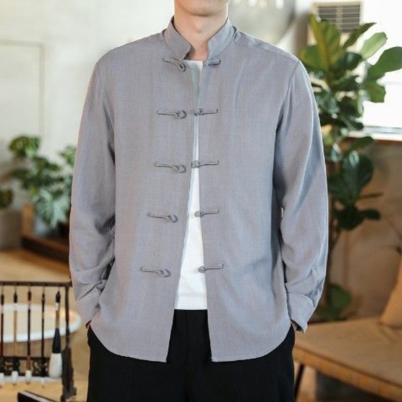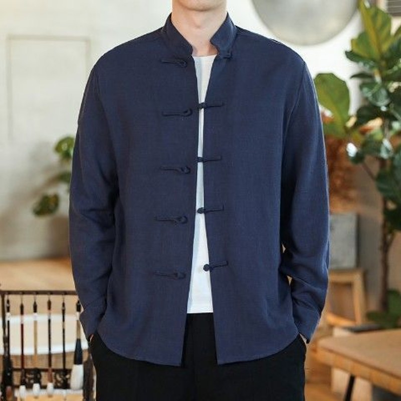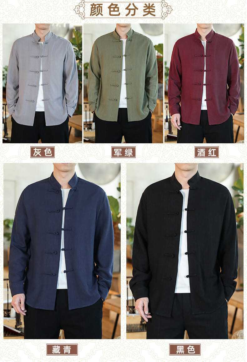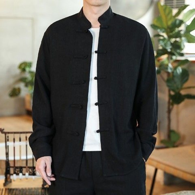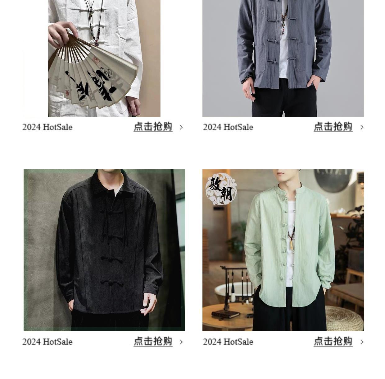 2024 중국 가을 버클 탕 세트 셔츠 레트로 캐주얼 플러스 사이즈 긴팔 중국 스타일 남자 올매치스토어 가기