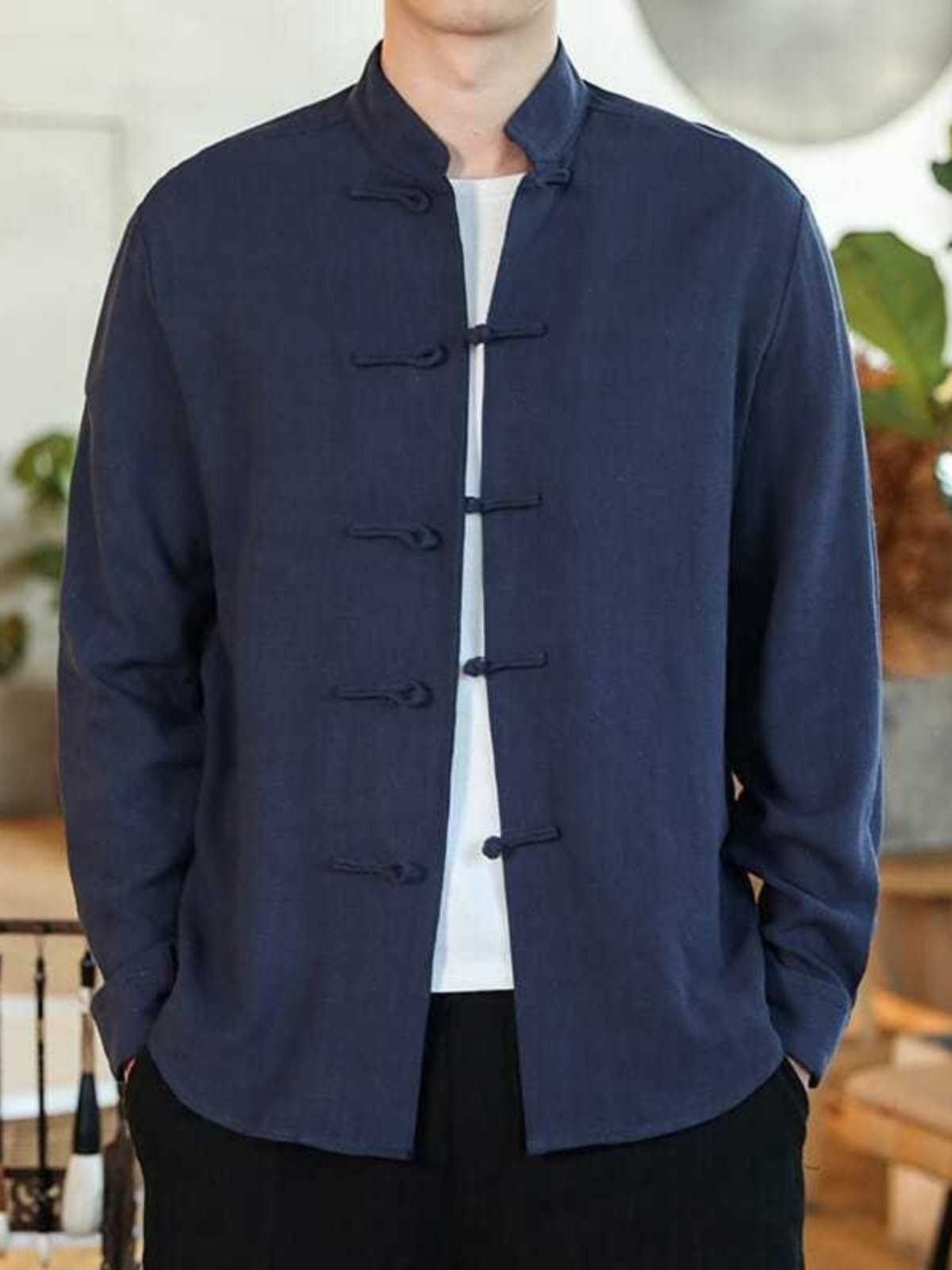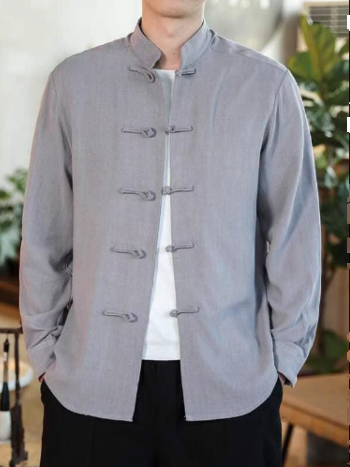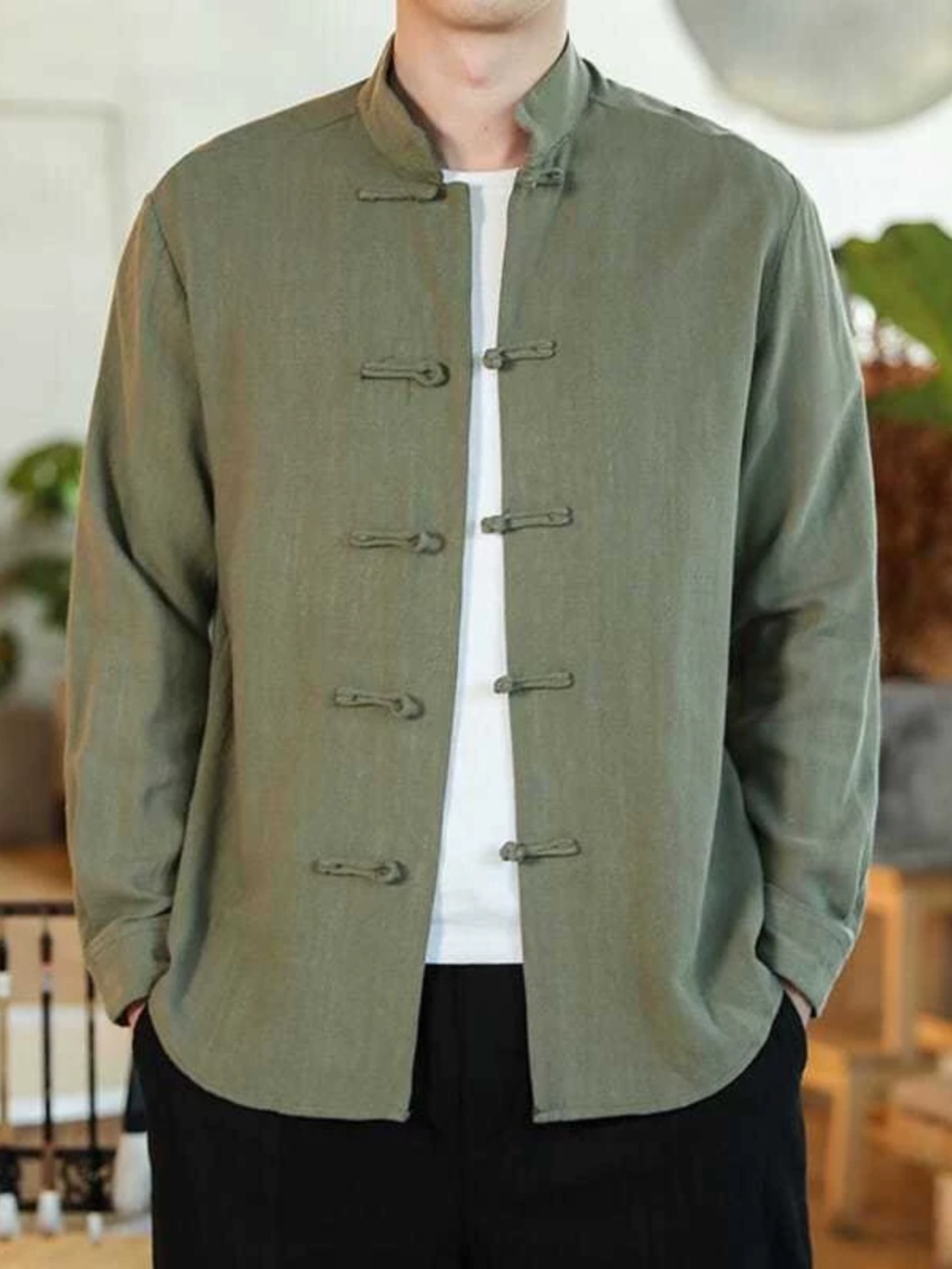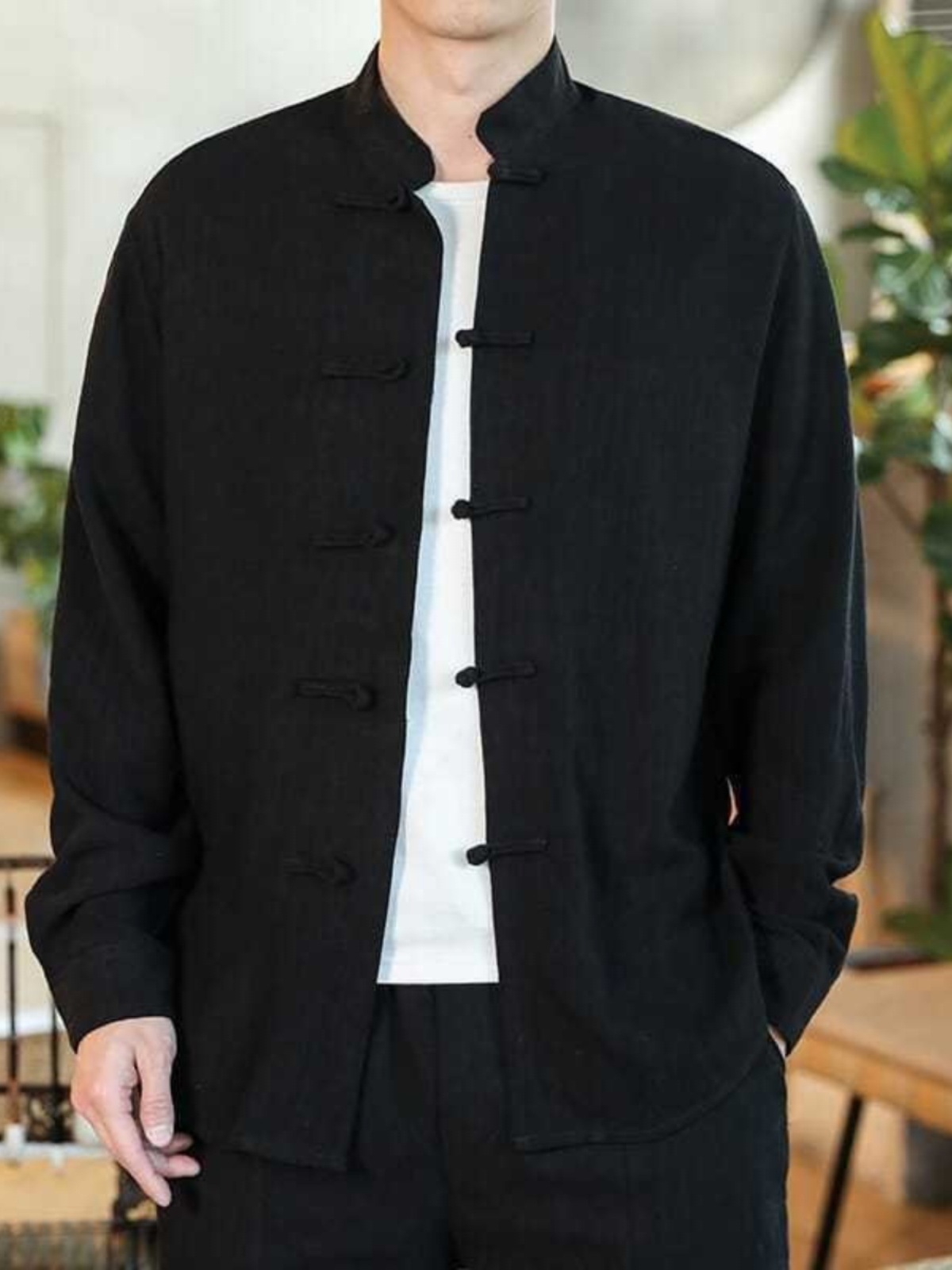 2024 중국 가을 버클 탕 세트 셔츠 레트로 캐주얼 플러스 사이즈 긴팔 중국 스타일 남자 올매치스토어 가기