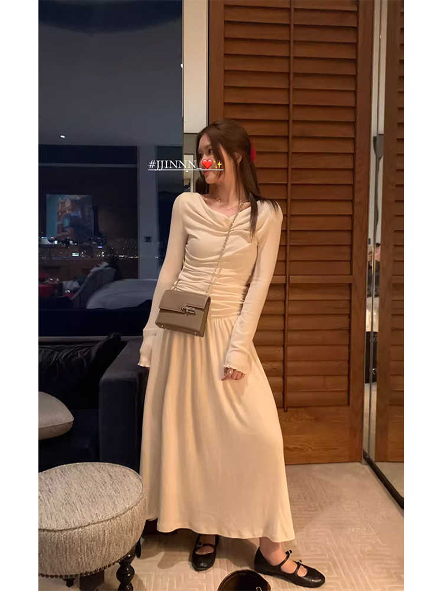 HEYGIRL Black Ginus 여신 스윙 칼라 폴드 프랑스 긴 소매 원피스 긴 소매 내부 긴 원피스 여성 봄