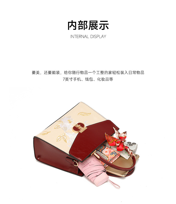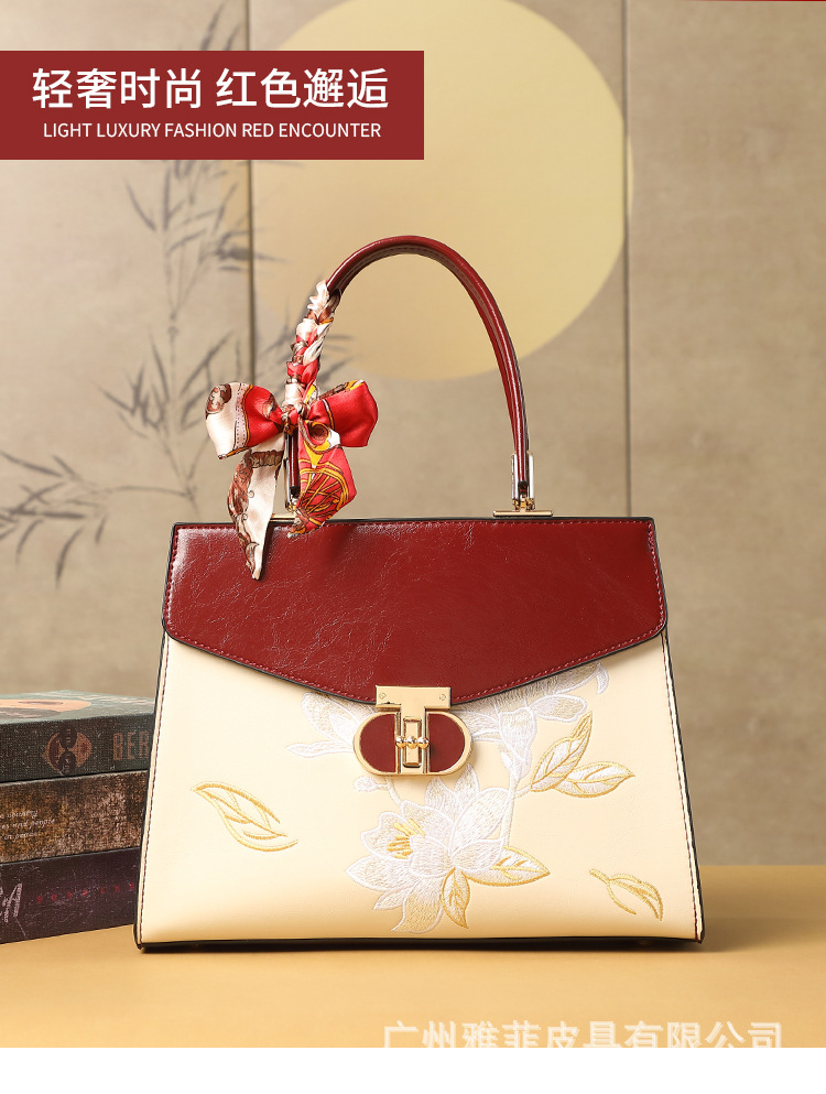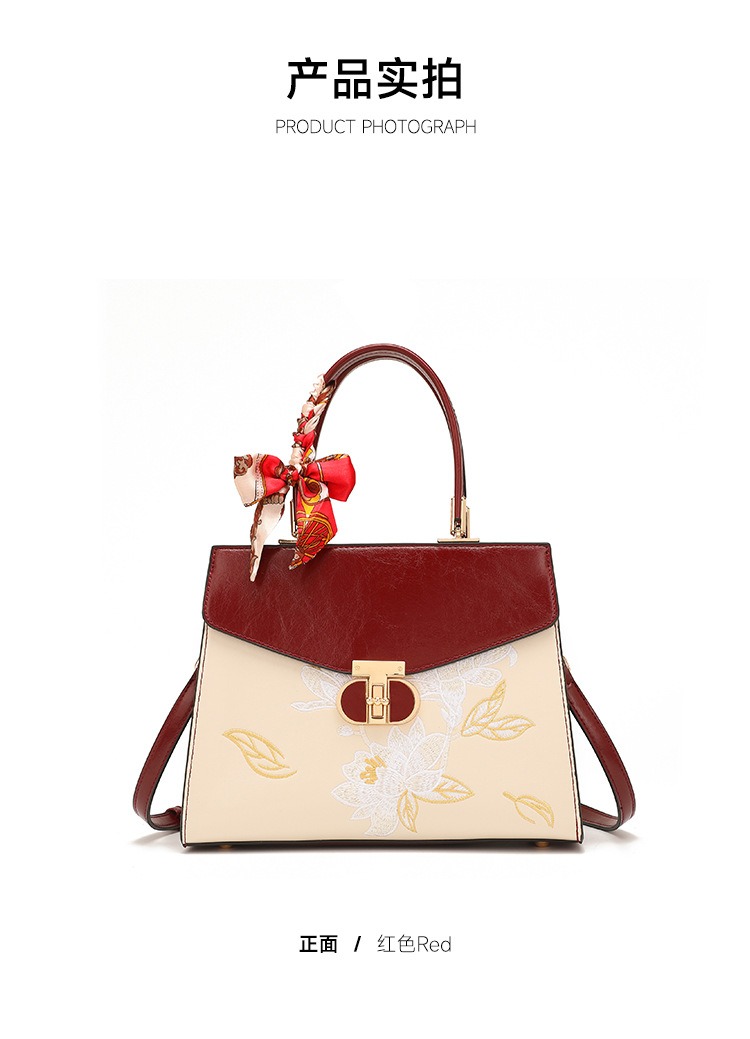 새로운 중국 스타일 국가 스타일 자수 오일 왁스 가죽 빨간 가방 어머니의 가방 웨딩 백 크로스 시어머니 웨딩 백스토어 가기